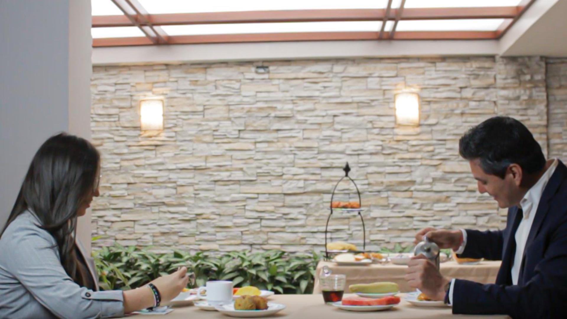 Start your day right with our American breakfast served at the coffee bar, including a variety of options such as eggs, bread, butter, brews, and juices. Enjoy a delicious and fulfilling meal before exploring the vibrant city of Quito.