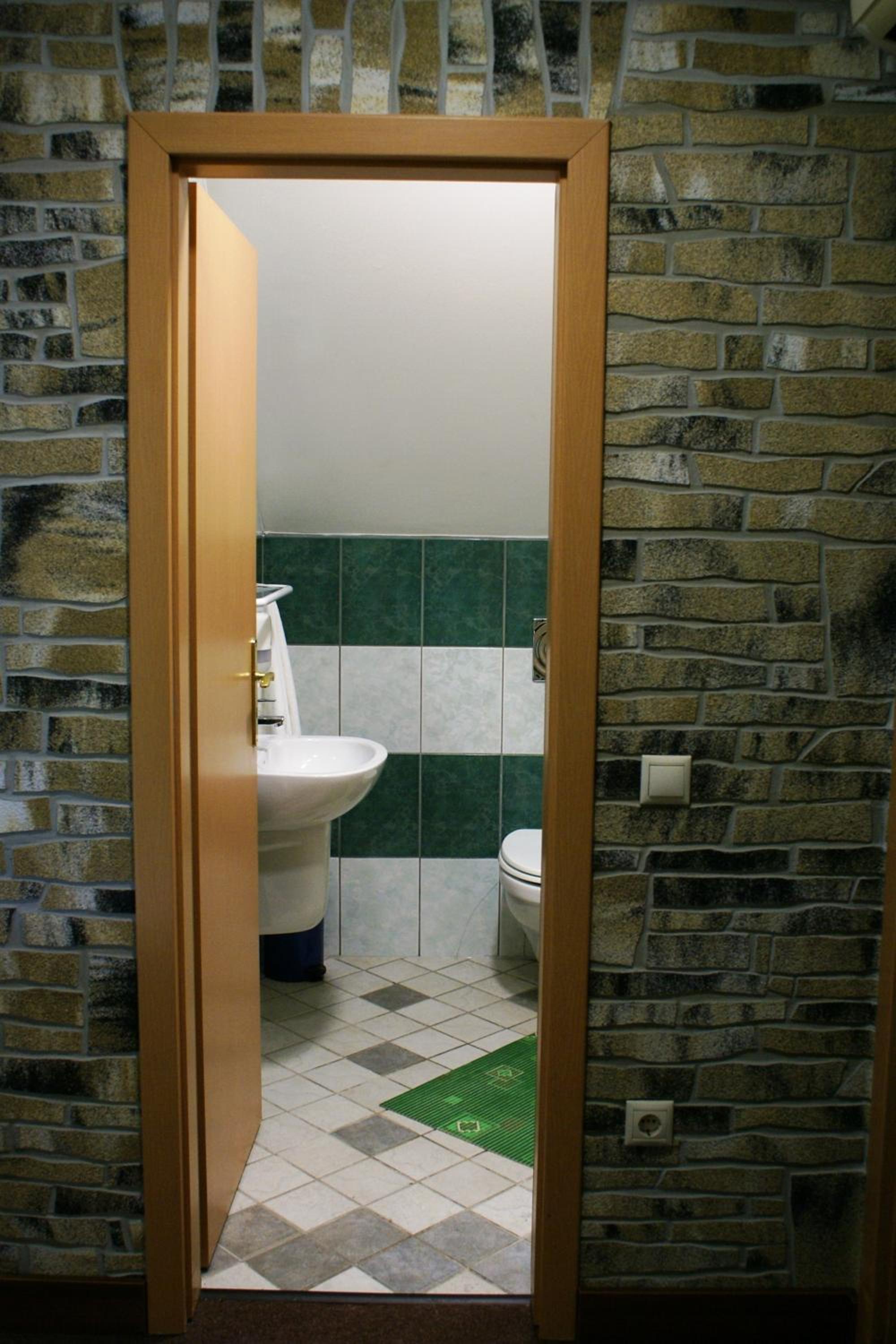 Penészes fürdő, zuhanyzó ajtaját nem lehetett bezárni, nyikorgó fürdőszoba ajtó, rejtélyes foltok több helyen és pókhálók.