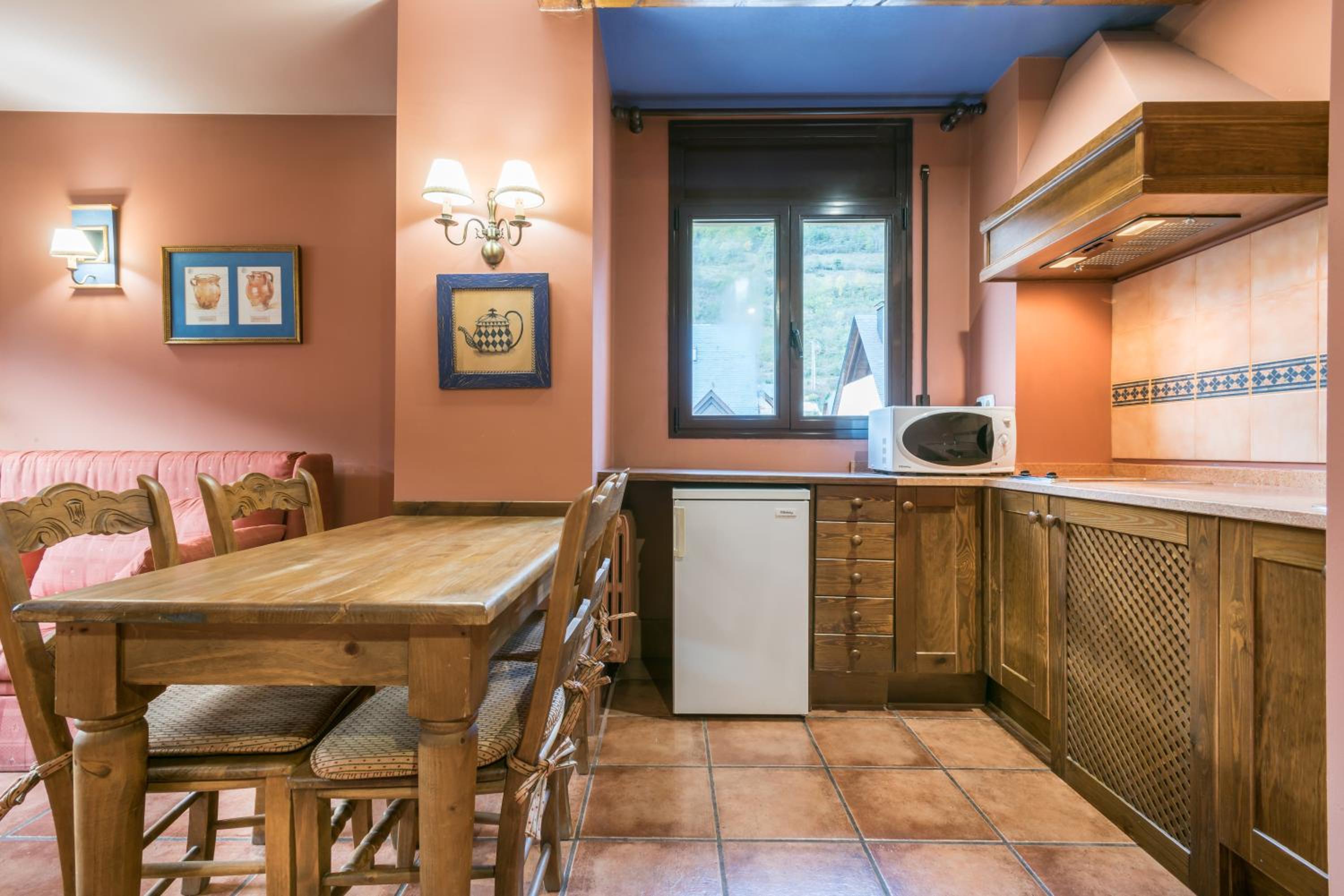 Vielha es una ciudad que me encanta y es la segunda vez que me alojo en este aparthotel. Los apartamentos son amplios y comodos para una familia de 4 (teniamos dos habitaciones, dos baños, dos TVs). Muy recomendable para estancias familiares. El personal muy atento. Desayuno y cena correctos, teniendo en cuenta que es el bar del hotel.
