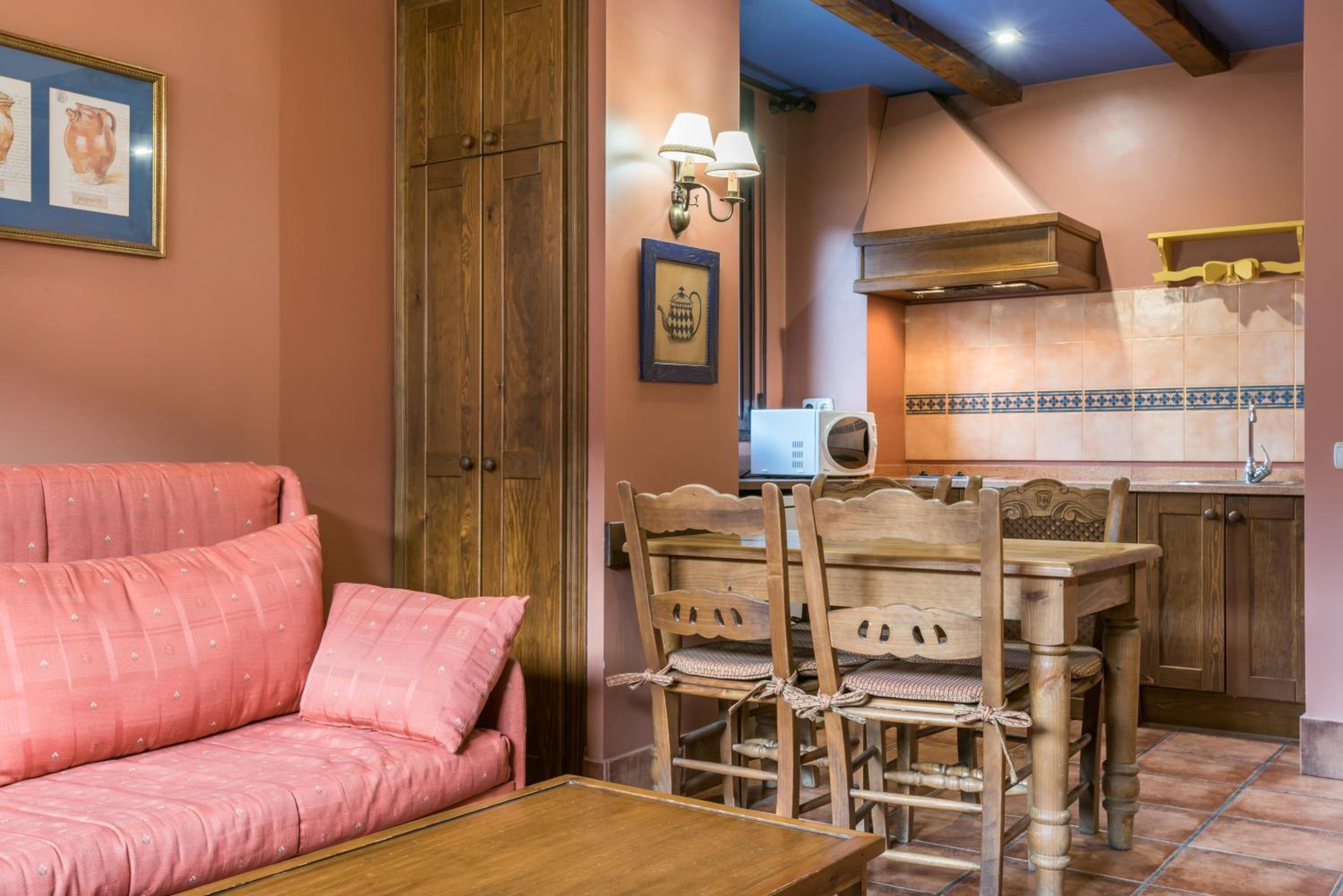 Que tanto el bar como la recepción tengan unos horarios reducidos aunque en la primera te dan facilidades para amoldarte a tus necesidades. Se escuchan ruidos ( conversaciones ) de los apartamentos contiguos. La placa de la cocina necesita un cambio así como algún utensilio de cocina . Tanto el sillón individual como el sofá no resultan muy cómodos.