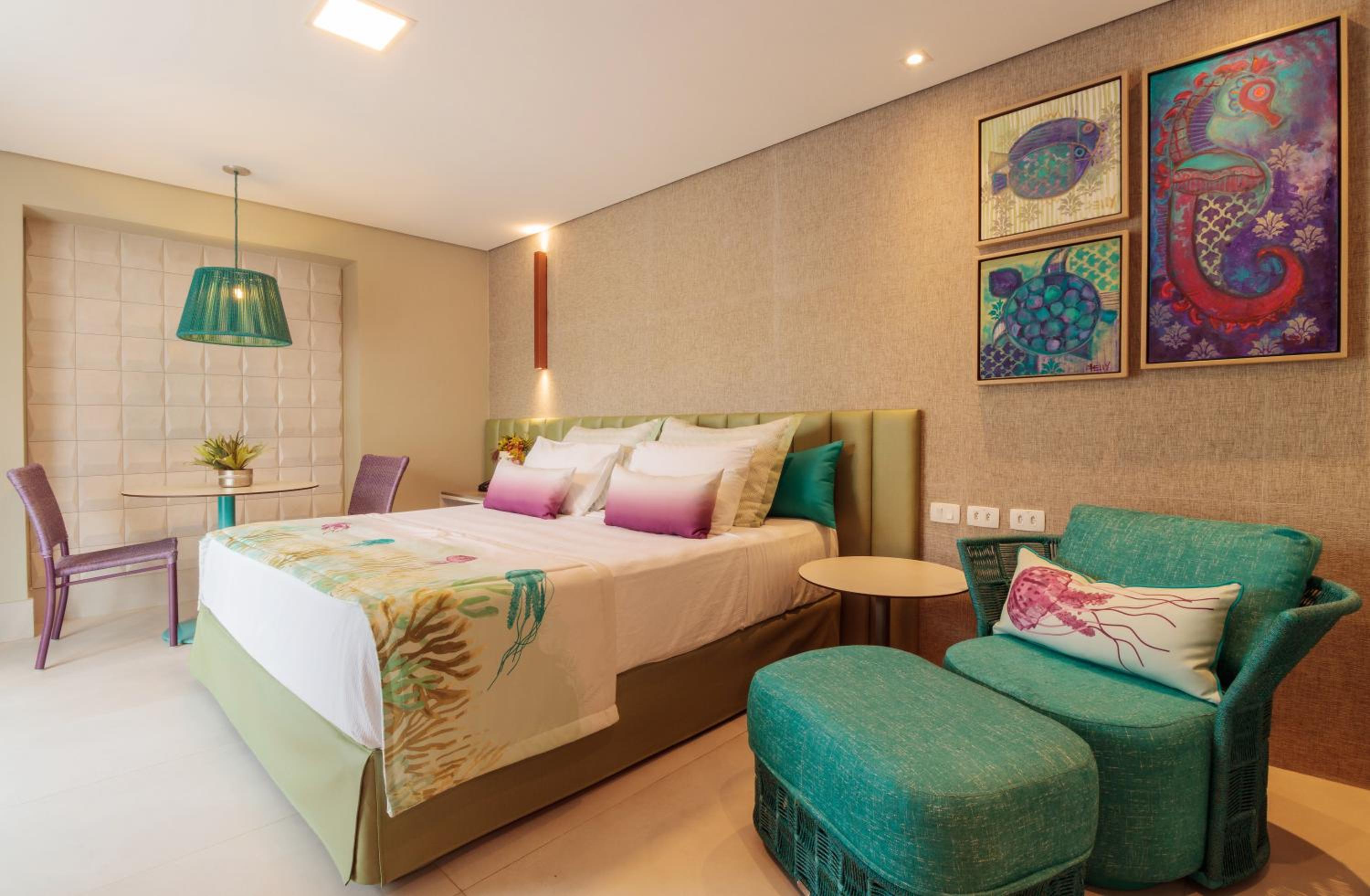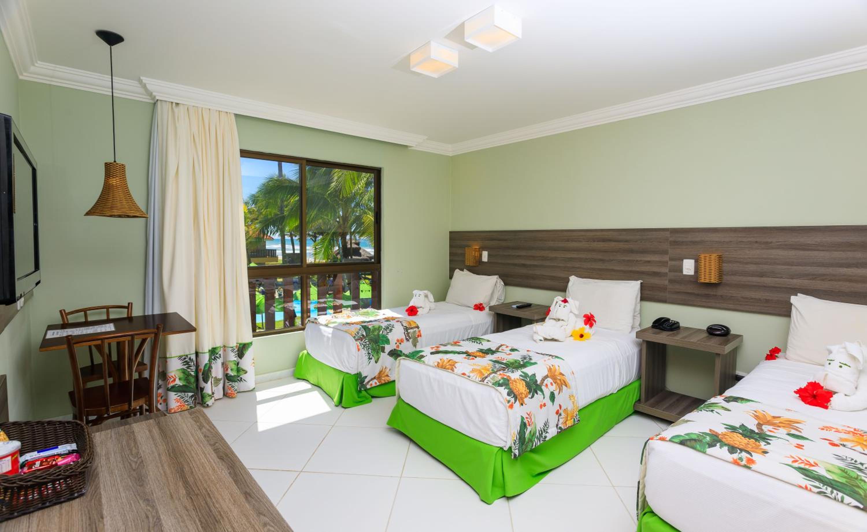 Quarto grande, muito limpo e a sacada com uma rede faz toda a diferença! O hotel é bem aconchegante, pra quem está com criança facilita. A piscina apesar de não ser muito grande é climatizada e tem a vista da praia. Gostei também da variedade da comida nas três refeições, principalmente por proporcionar opções para que tem restrição a açúcar, glúten e lactose. Os funcionários são uns amores, super prestativos. A equipe de animação tanto infantil quanto adulta dá um show a parte, e falando em show, toda noite tem uma banda diferente, fazendo toda a diferença na estadia!