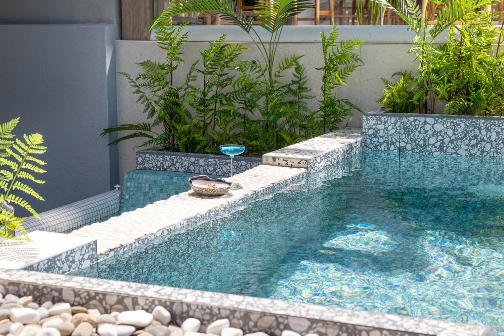 Piscine pour l’hôtel minuscule et piscine privée mériterait d’être chauffée du coup vous payer une chambre plus cher pour rien