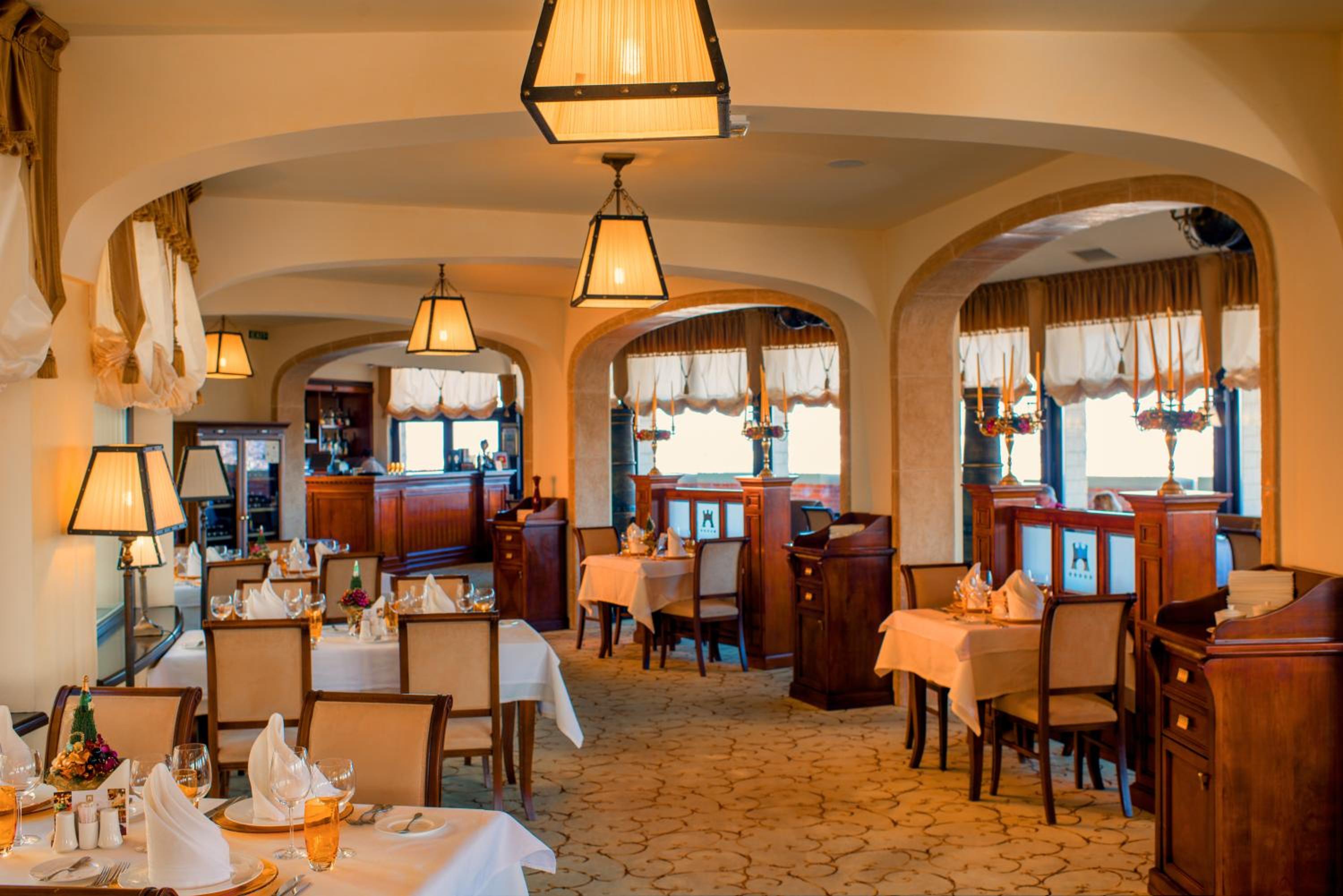 Indulge in European and Ukrainian gourmet cuisine at our restaurant, complemented by a diverse selection of international wines in our wine cellar.