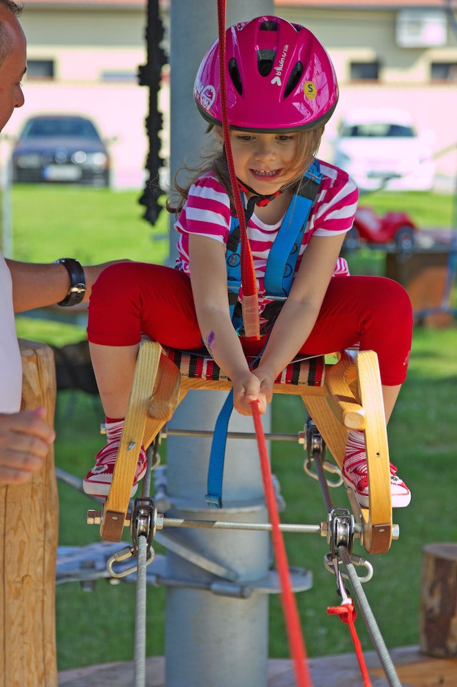 Das Essen war super, die beiden Poolbereiche waren auch super. Zimmer war ok, Bett leider unbequem, reichte aber für 2 Übernachtungen, Badezimmer war etwas in die Jahre gekommen. Duschtücher im Badezimmer fehlten, wurden aber auf unsere Bitte nachgeliefert. Gestört hat uns, dass man Bademantel und Badetuch nicht austauschen darf. Wir fragten bereits am 1. Tag danach, wurden leider abgelehnt. Über Nacht war noch immer alles nass, somit mussten wir am 2. Tag sehr betteln, um einen trockenen Bademantel und ein Badetuch zu bekommen. Das sollte in einem 4 Sterne Haus selbstverständlich sein. Leider gab es im Wellnessbereich auch keine Aufhänge-Möglichkeiten für Badesachen und Badetücher, keine Haken, somit waren auch fast alle Liegen belegt. Im Bereich ab 16 Jahren war im WC das Licht ausgebrannt, außerdem befanden sich dort sehr viele Kinder. Es war kein Bademeister in Sicht. Frühstück und Abendessen war spitze, leckere Speisen und große Auswahl. 2 junge Kellnerinnen waren etwas genervt, aber ansonsten war es super. Ich würde dem Hotel 3 Sterne geben. Hotel wäre schön, aber der Service von einem 4 Sterne Hotel fehlt leider.