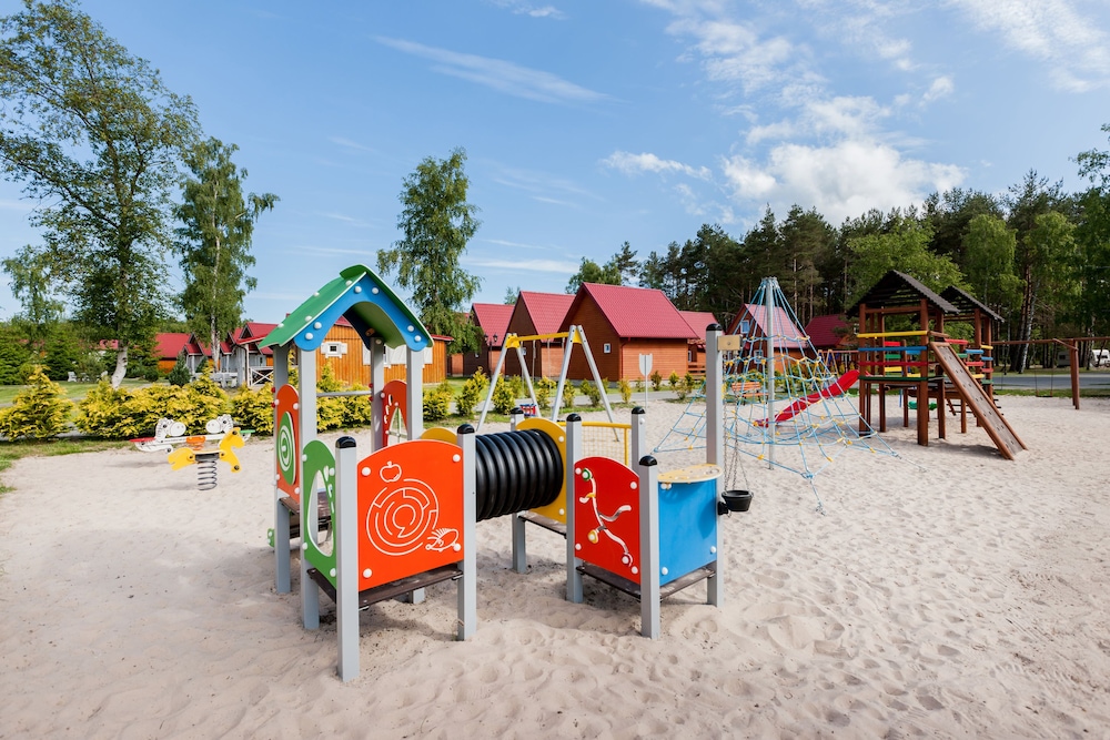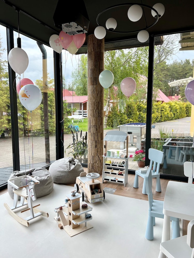 Wiele atrakcji w hotelu: basen i sauny, plac zabaw, restauracja.