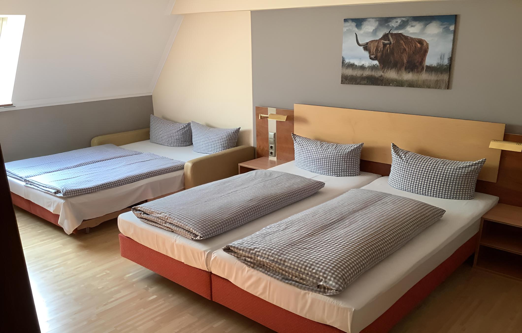 Indulge in individually decorated rooms with parquet floors, a TV, and a small fridge. Unwind in the privacy of your own bathroom with a refreshing shower. With recent renovations, our annex rooms offer modern comfort and style.