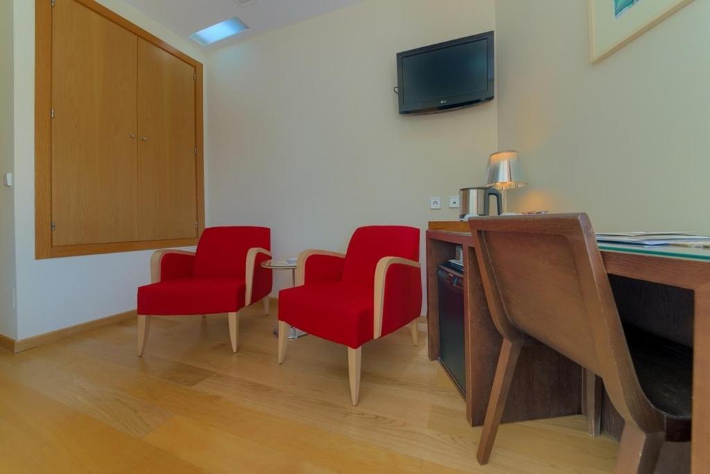 Relax in air-conditioned rooms adorned with colorful abstract art and oak floors. Each room features a minibar and a sleek bathroom with a hairdryer, ensuring a comfortable stay in style.