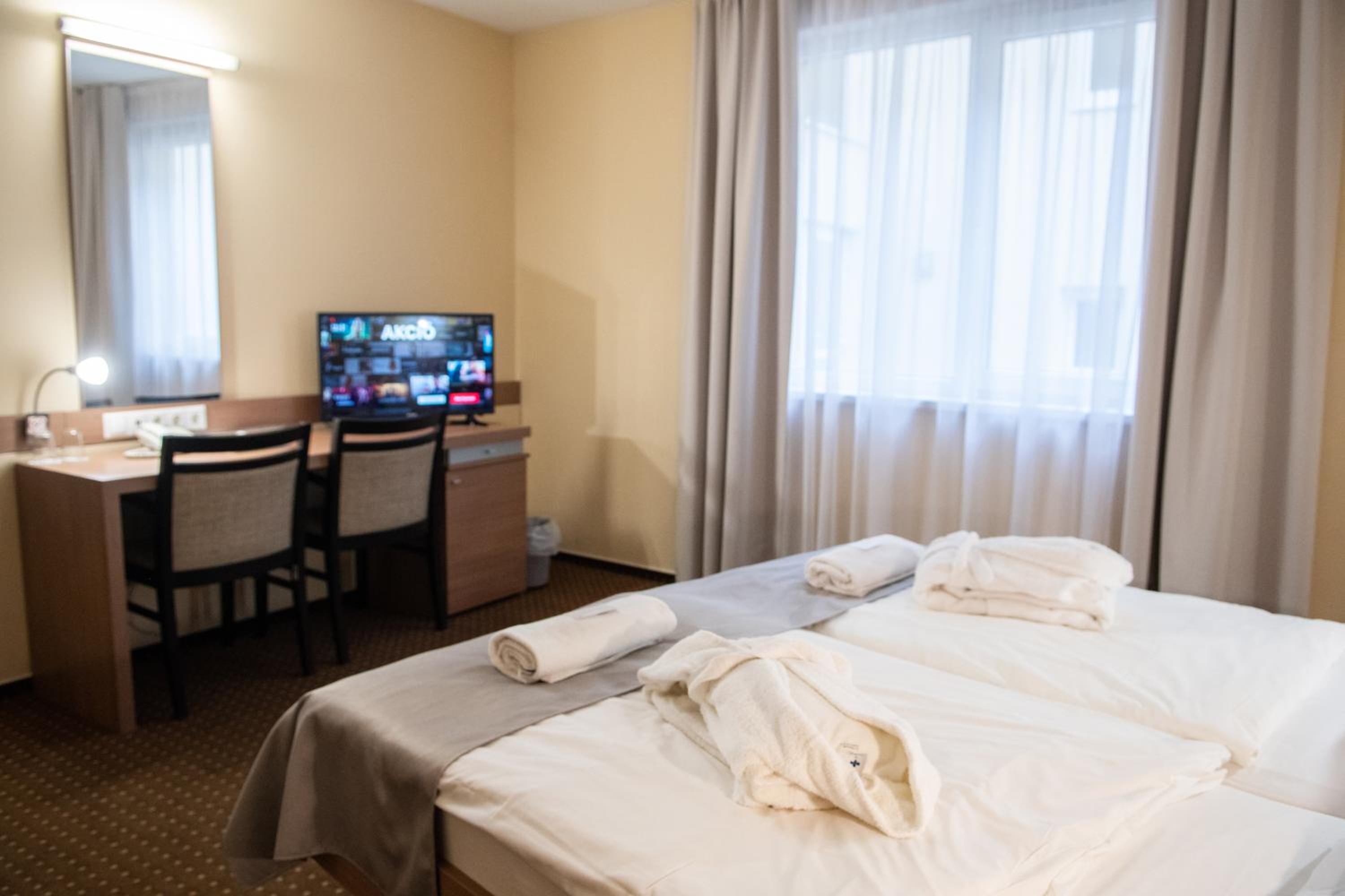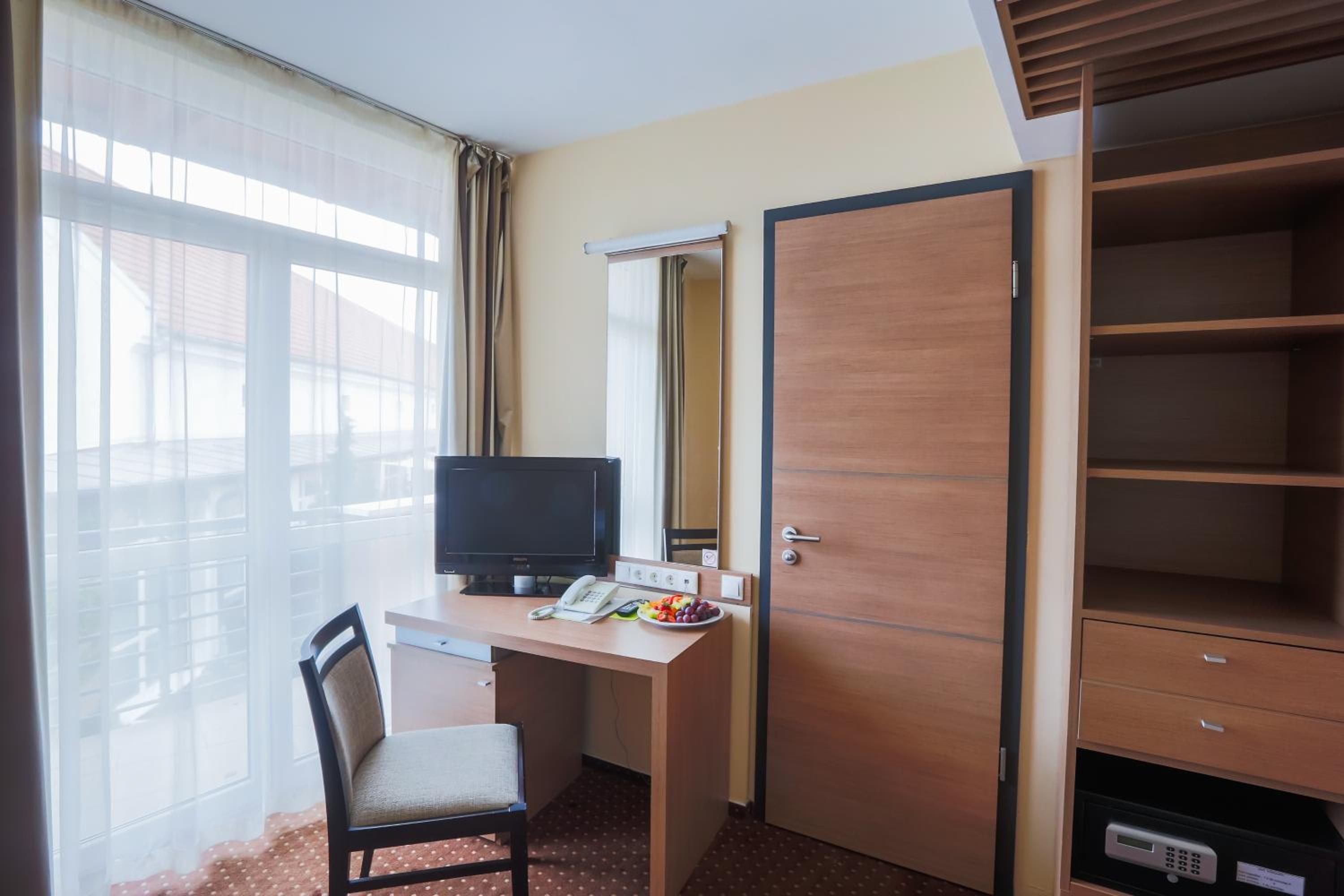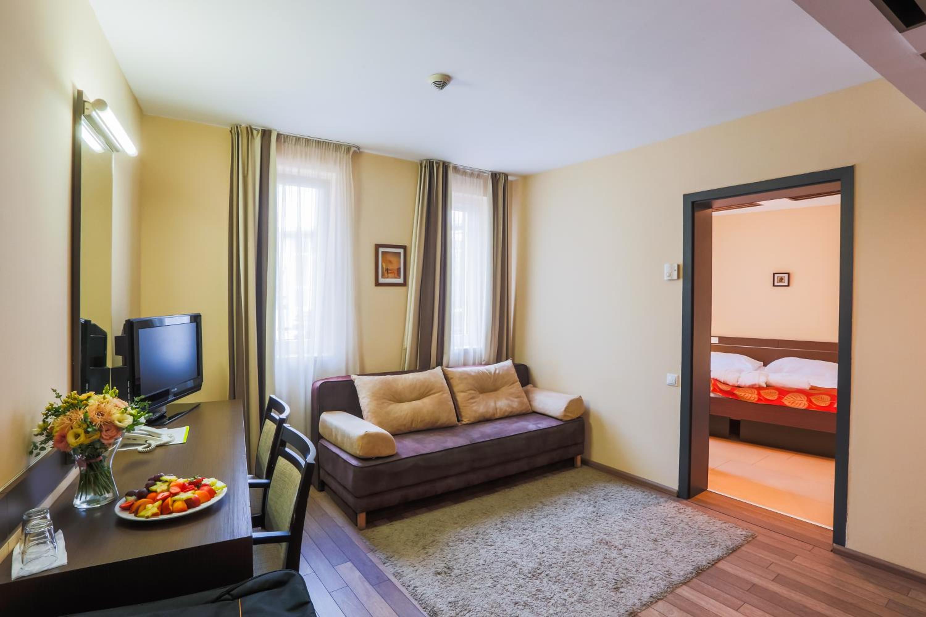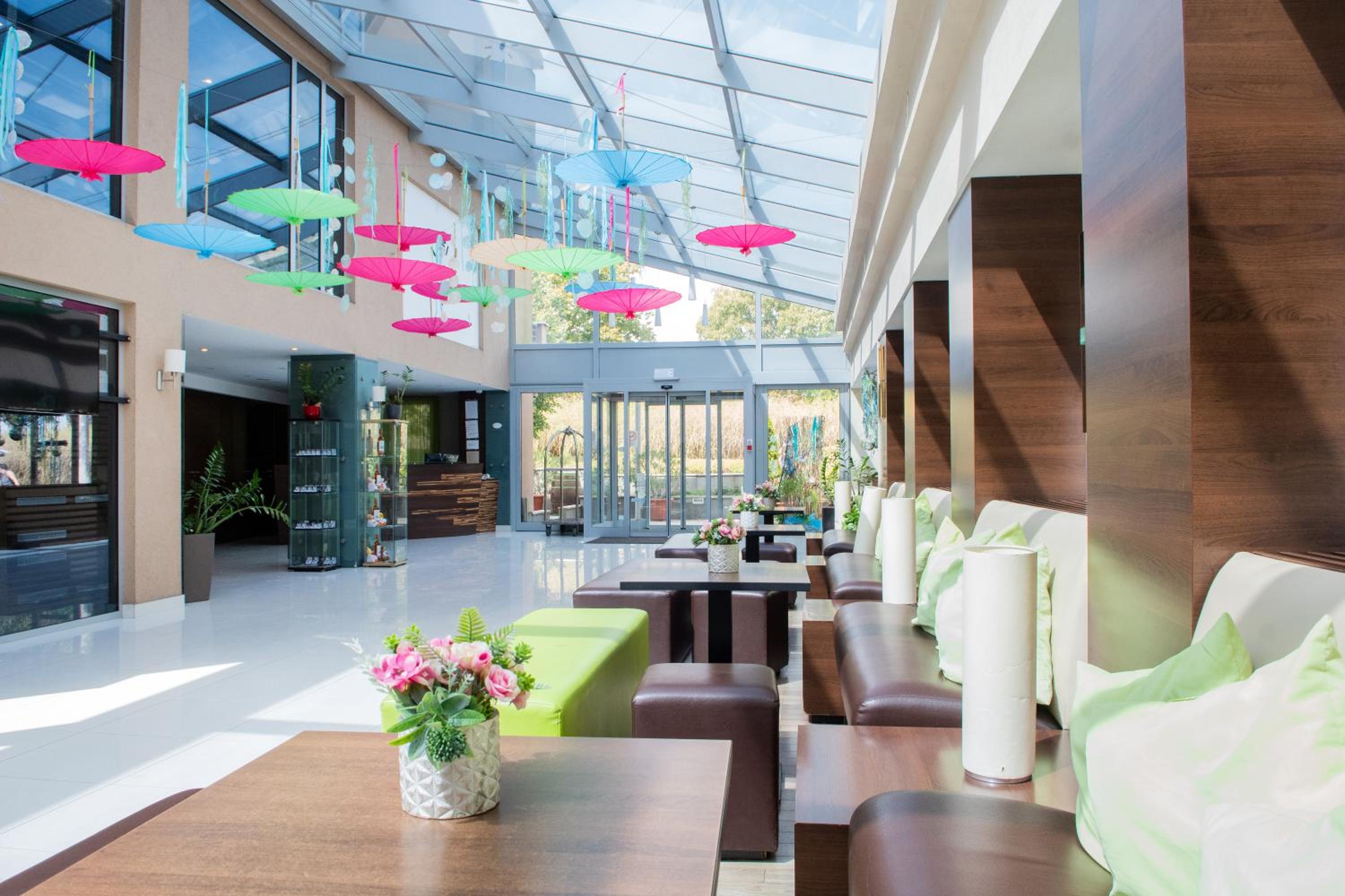 The CE Plaza Hotel in Siófok offers elegantly designed guest rooms with modern amenities including anti-allergenic pillows, flat-screen TVs, and laptop-sized safes. The nightly turn-down service ensures a comfortable stay.