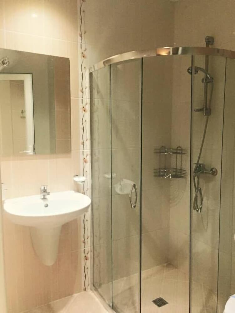 We will never come to this hotel again and will not recommend it to anyone. Hotel staff was very unfriendly with sour faces. They charged us E5 for parking daily, plus wifi E5 for 6 hours for every single gadget, and internet connection wasn't good. There was also charge for hair dryer and iron. We arrived at night, toilet seat was broken and fridge defrosted and leaking on the floor. the receptionist gave me a mop and I had to do clean it myself. There was always smell from the shower hole like from toilet. At night time there was always drunk people being noisy on the floor and we couldn't sleep, because we heard everything. Pillows were very hard and unconfortable. The only person we liked was our cleaner Sevda, she was very friendly, chatty, keeping our room clean and making nice decorations on the beds from towels. Also restaurant staff was nice and friendly.