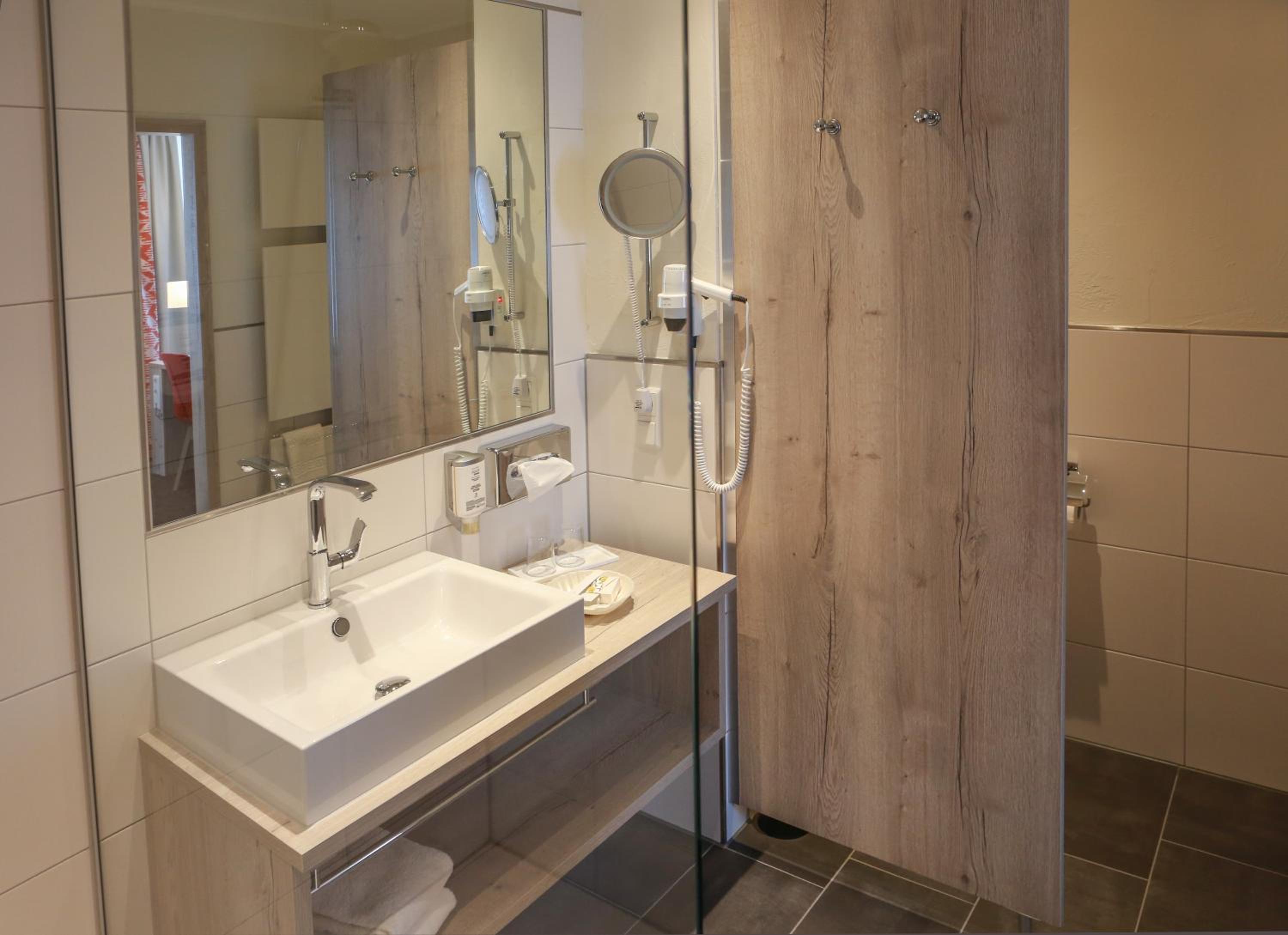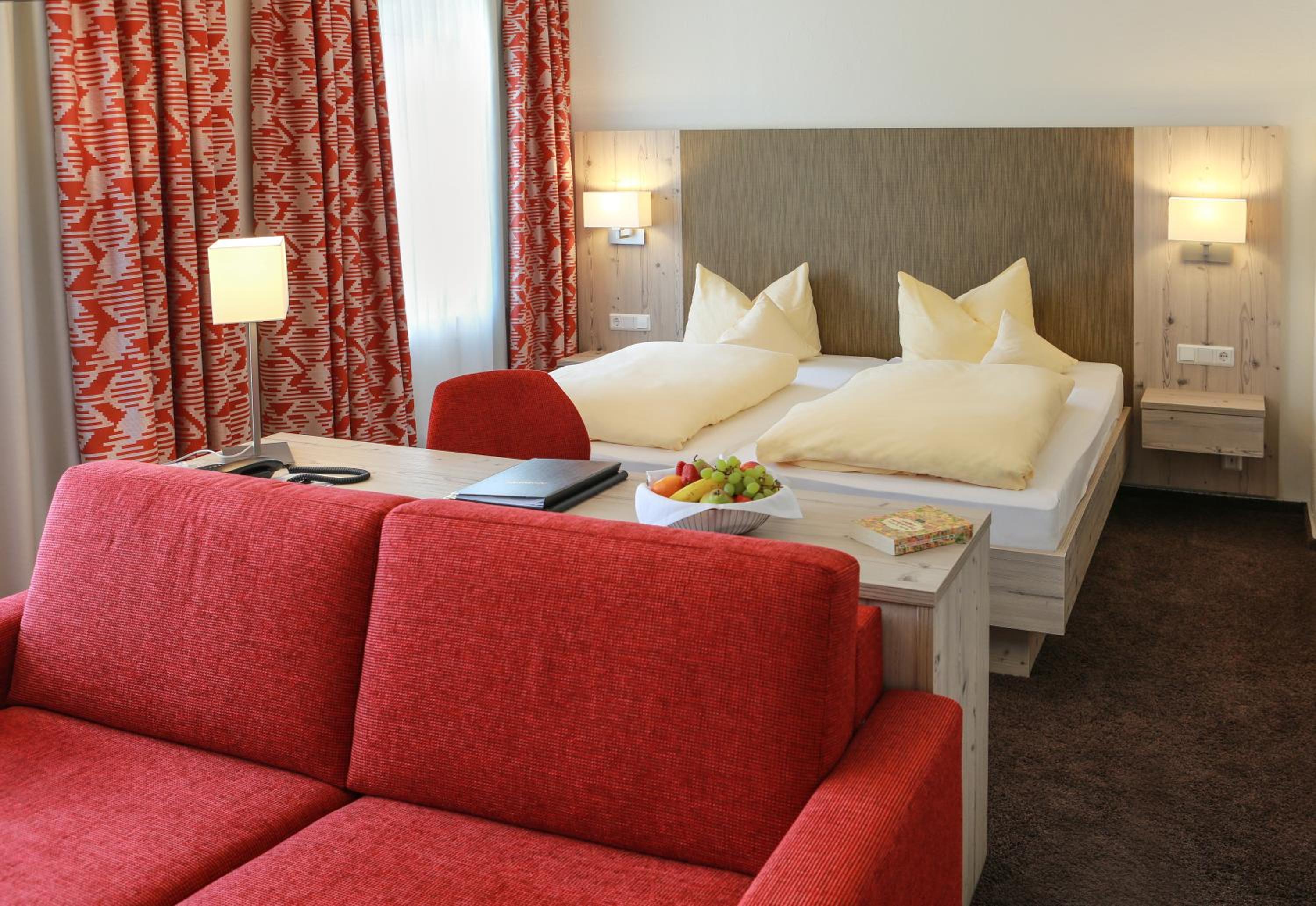 Ruime familiekamer met schuifdeur naar de slaapbank voor de kinderen. Badkamer ook groot genoeg voor een gezin.