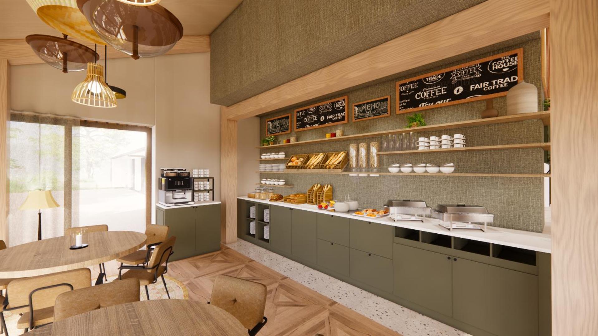 The breakfast was Buffet style in a dutch manner complete with bacon and scrambled eggs and all the trimmings. It is a relatively new hotel, clean, spacious and a cosy bar-longe dining area. Hotel is situated outside the village in a serene setting.