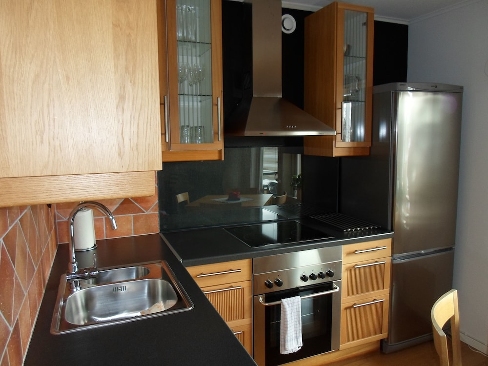 Rummelig lejlighed til to personer. Lejligheden er indrettet som privat beboelse med opholdsrum og køkken. Og der er en altan med havudsigt. Vi lejede cykler på havne og cyklede hele nordspisen rundt en dag. De andre dage kørte vi - og helt til sydspidsen. Der er ladestander til elbil lige ved siden af. Husk at købe ind til morgenmaden, før butikkerne lukker ;-)