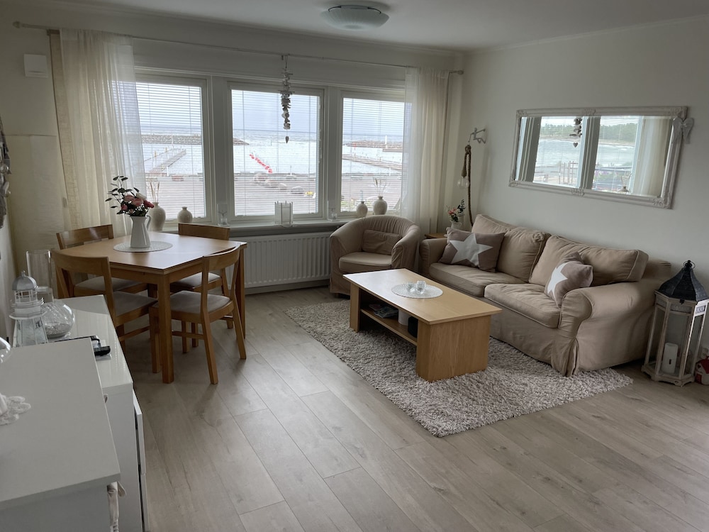 Ett utmärkt läge direkt vid hamnen och stranden 100 m bort . hade lite strul med bredband o tv första dagarna men de löstes smidig av ägaren.