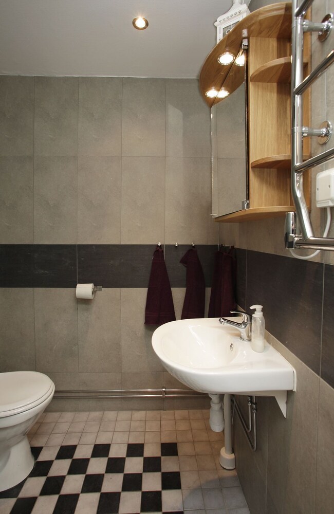 Superfint läge, och mycket trevligt bemötande. Vissa inredningsdetaljer kunde fräschats upp i både kök (spishäll, fläkt och bänkskivans underkant hade mått bra av uppgradering), sovrum (trasiga delar på persiennerna) och badrum (duschomkopplaren mellan takdusch och handdusch funkade inte), men överlag fint, och välplanerad lägenhet.