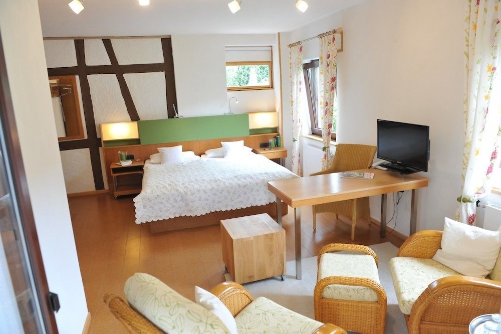 Immerse yourself in the beauty of nature at Bio Hotel Forellenhof, located steps away from Lahn-Dill Highlands Nature Park and close to various hiking trails.