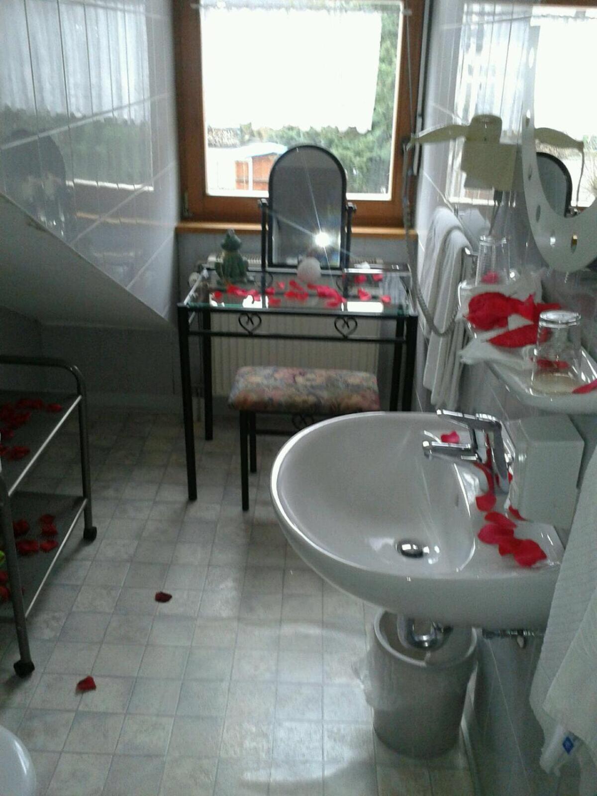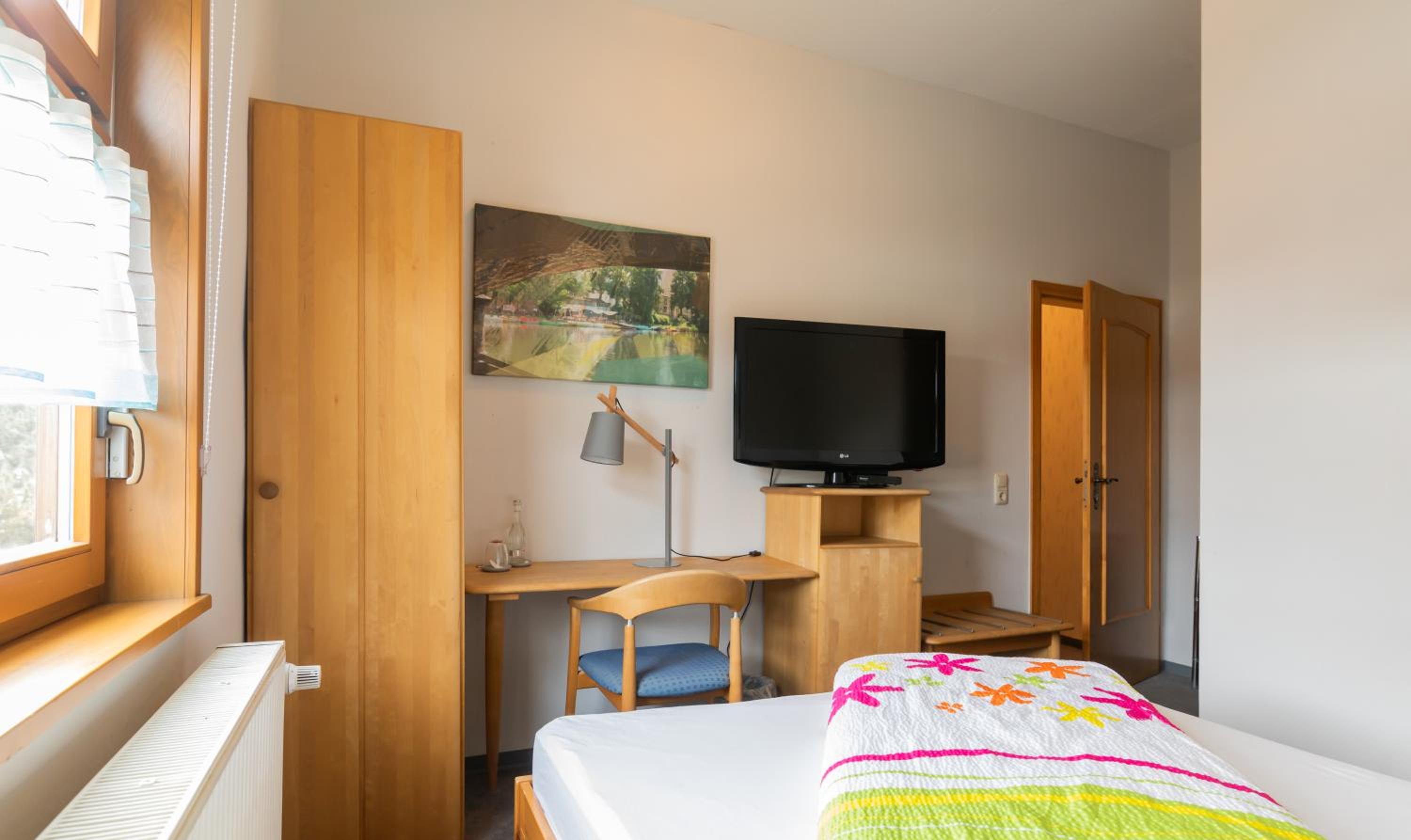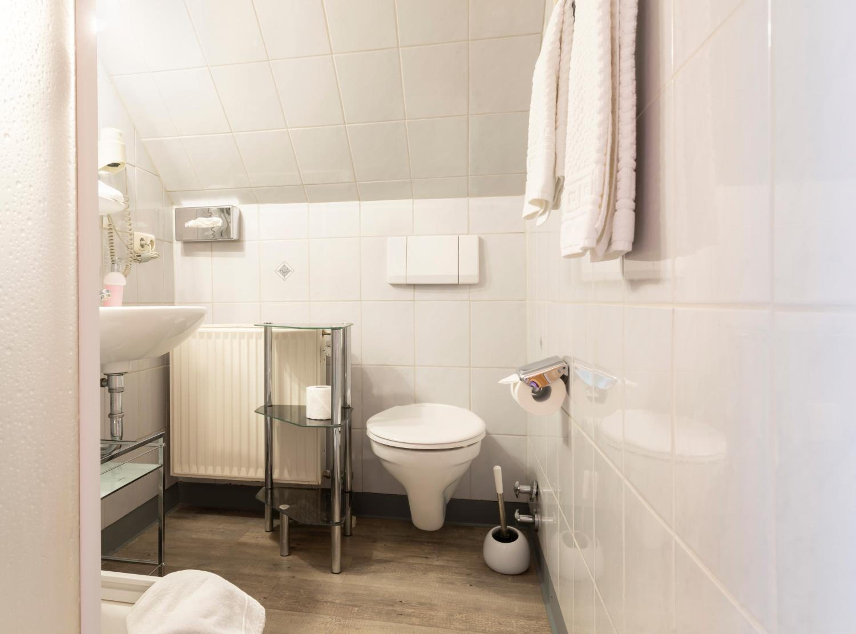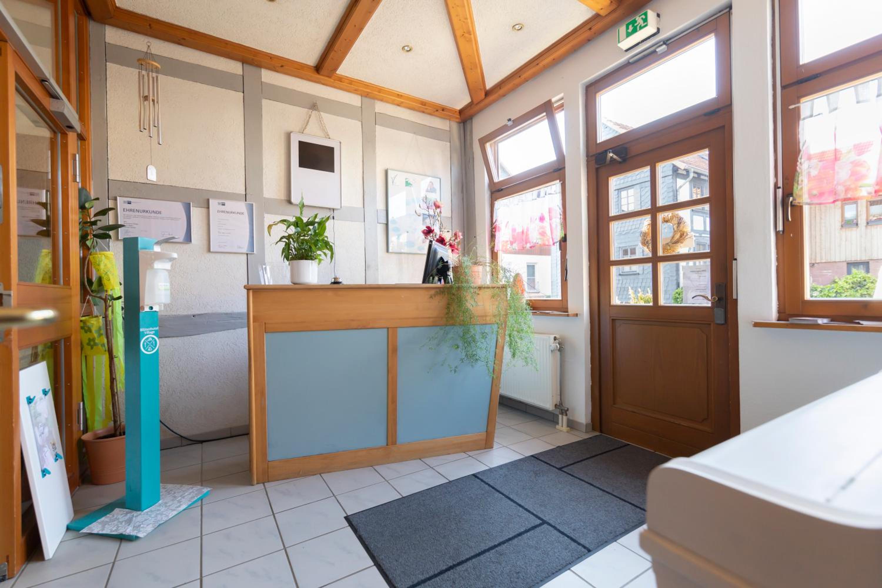 Nachdem wir etwa eine Stunde vor angegebener Ankunftszeit am Blütenhotel angekommen sind, mussten wir uns im Hinblick auf die verschlossene Hoteltüre über die Klingel mittels einer Sprechfunktion bemerkbar machen. Wir konnten zwar Niemanden direkt sprechen, jedoch eine Nachricht über unsere Ankunft hinterlassen und uns wurde etwa 5 Minuten später geöffnet. Der Empfang (vermutlich der Hotelinhaberin) war freundlich, aber kurz und knapp. Leider hat Sie uns nicht zum Zimmer geleitet, denn sonst hätten wir erfragt, ob nicht ein anderes, größeres Zimmer (ohne Dachschräge und mit Kleiderschrank) frei gewesen ist. Da wir abends um 18 Uhr angekommen waren, haben wir nach dem Check-in auch keinerlei Hotelpersonal mehr (bis zum nächsten Morgen) gesehen. Nichtsdestotrotz kamen wir mit dem kleinen Dachzimmer und kleinen Bad zurecht. Das Frühstück könnte Aufwertung erfahren, wenn ein wenig mehr Auswahl (z.B. frisch gekochte Eier, Nutella...) sowie frisch zubereitete Gurken- und Tomatenscheiben und Paprikasticks angeboten würden.
