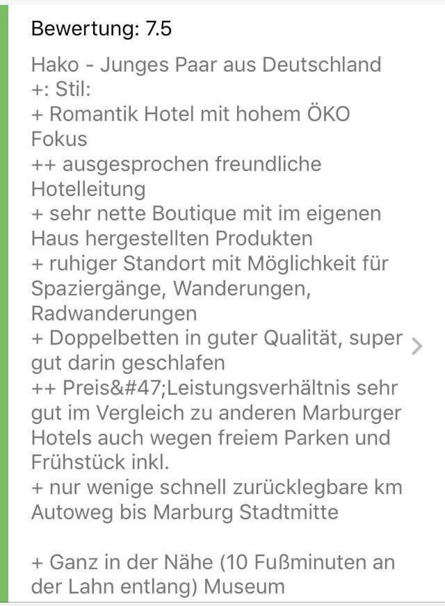 schnelle Erreichbarkeit vom Hbf. Marburg und Klinikum. Es gab ein hervorragendes Frühstück und für uns wurde morgens extra eine halbe Stunde früher geöffnet, weil wir zum Uni-Klinikum mussten. Äußerst freundliches Rezeptionspersonal und beim Frühstück.