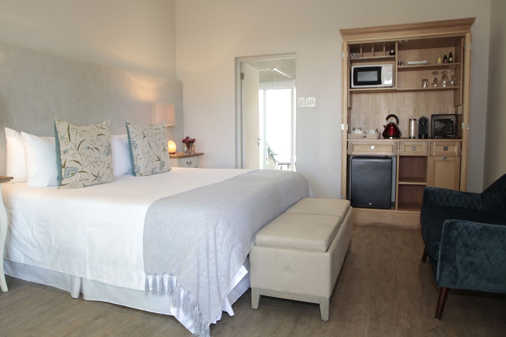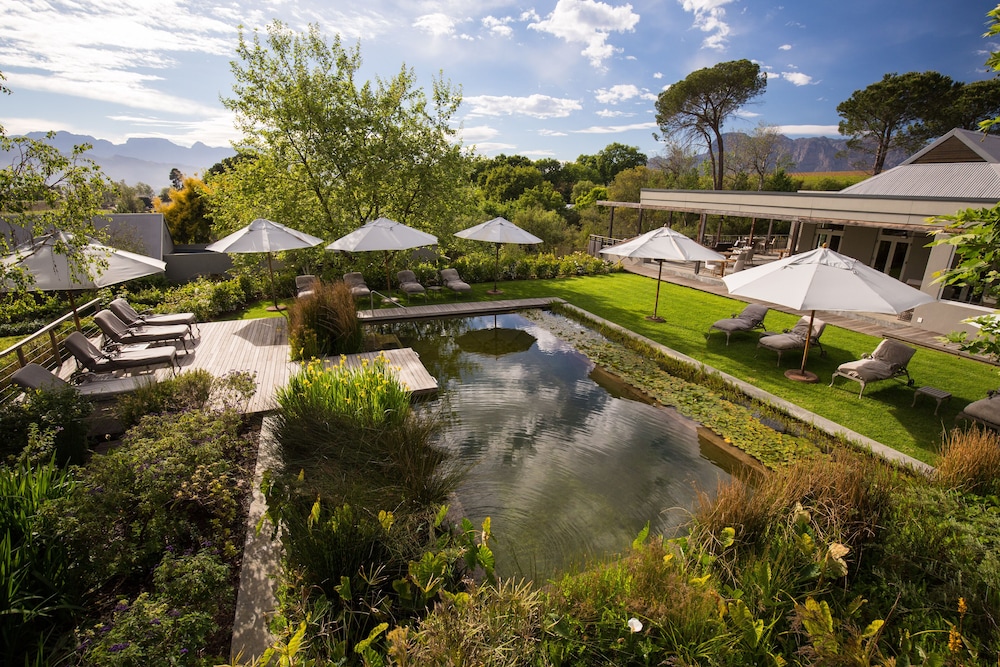 This family-owned boutique hotel is a hidden gem in the Winelands. The property is immaculately maintained, and the staff go above and beyond to ensure you feel welcomed and at ease. The tranquil setting, surrounded by nature, offers a natural pool (complete with frogs), a treated pool, a hot tub, and both wet and dry saunas. The gardens and balcony provide the perfect space to relax and take in the serene views. It’s wonderfully secluded, offering peace and quiet, away from any distractions.
