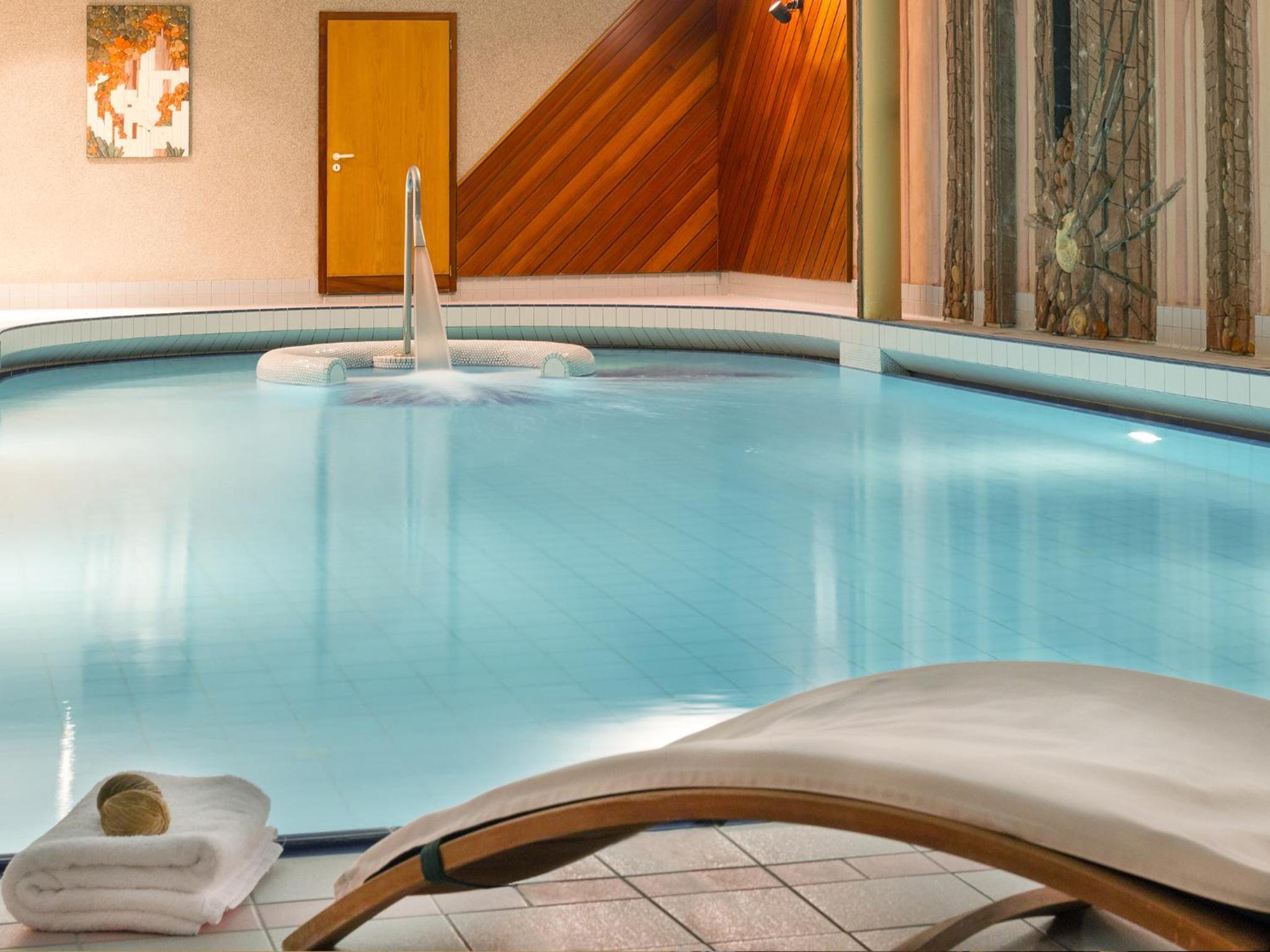 Luxurious Wellness Centre: Indulge in relaxation at our sauna and swimming pool in the serene park setting.