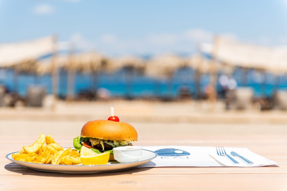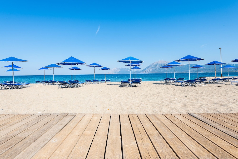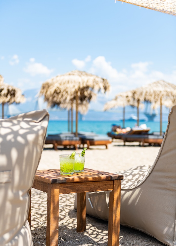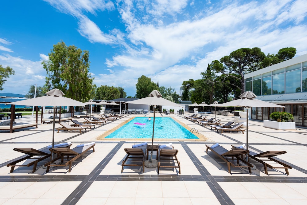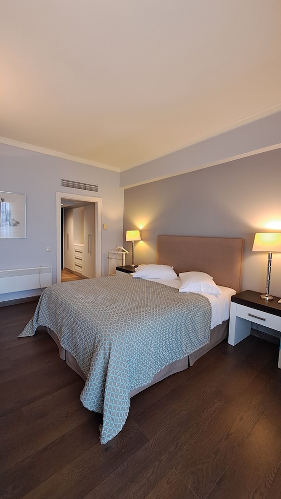 Hotellet har ett fantastiskt läge med såväl egen strand som poolområde. Personalen gör sitt bästa men frukostmatsalen lever inte upp till standarden för ett hotell som vill vara högklassigt. Tråkigt bröd, utspädd apelsinsaft som juice, blaskigt kaffe och inte ens en tomatskiva. Många gäster har all inclusive så jag förstår att de vill spara in, dock inte vi. I poolbaren fick vi betala för Greklands sämsta Frappe (saknade helt kaffesmak). Rummen rena och ljusa och städningen var bra. Känns lite som man lever på gamla meriter