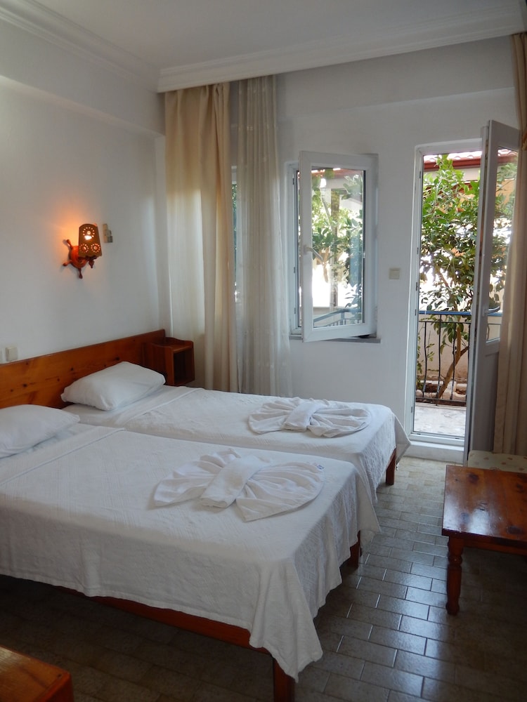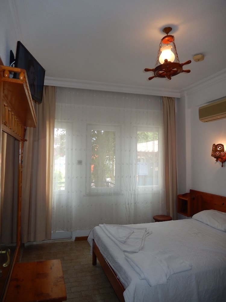 We booked the hotel at the last moment, it was important for us that there was no prepayment because there was only cash(sometimes it happens). And we arrived later than expected, but the owner of the hotel kindly escorted us and offered us to choose a room, helped with TV, kindly responded to our request to park the bike right on the hotel grounds, didn't leave without tea although we had ordered a room without breakfast. And the price/quality was very pleasant. The staff was polite, delicate, discreet, helpful, very nice and friendly - from the hotel owner to the gardener and maids. They persistently tried to do general cleaning every day, although it was enough to refresh the room - it was very nice to know how conscientiously people do their work. The room was exactly like on photos, no surprises. The shower worked, there was no need to dance with a tambourine to switch the water temperature, the pressure was good, a small window served as a ventilation. The air conditioner was weak and needed cleaning. The small refrigerator probably didnt work without the only key-card we took with us. But none of this was absolutely a problem, because we came to enjoy Fethiye. The 2nd floor balcony was a nice bonus. The Wi-Fi worked perfectly. Сameras provided security. On the territory a lot of lush greenery, it is so nice to please the eye. Thanks for all who made our stay so cosy&pleasant. I wish you a lot of good, grateful guests, and further prosperity and development =)