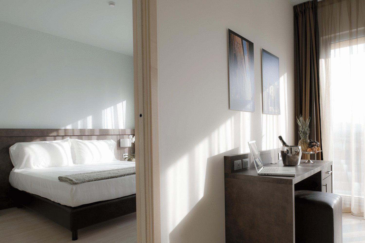 Experience elegance and comfort at Blu Arena Hotel with stylish rooms featuring modern amenities like flat-screen TVs, free Wi-Fi, and luxurious toiletries.