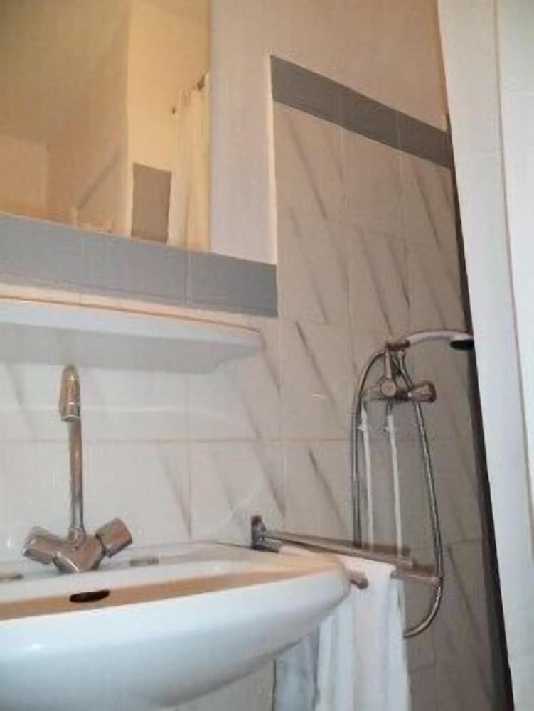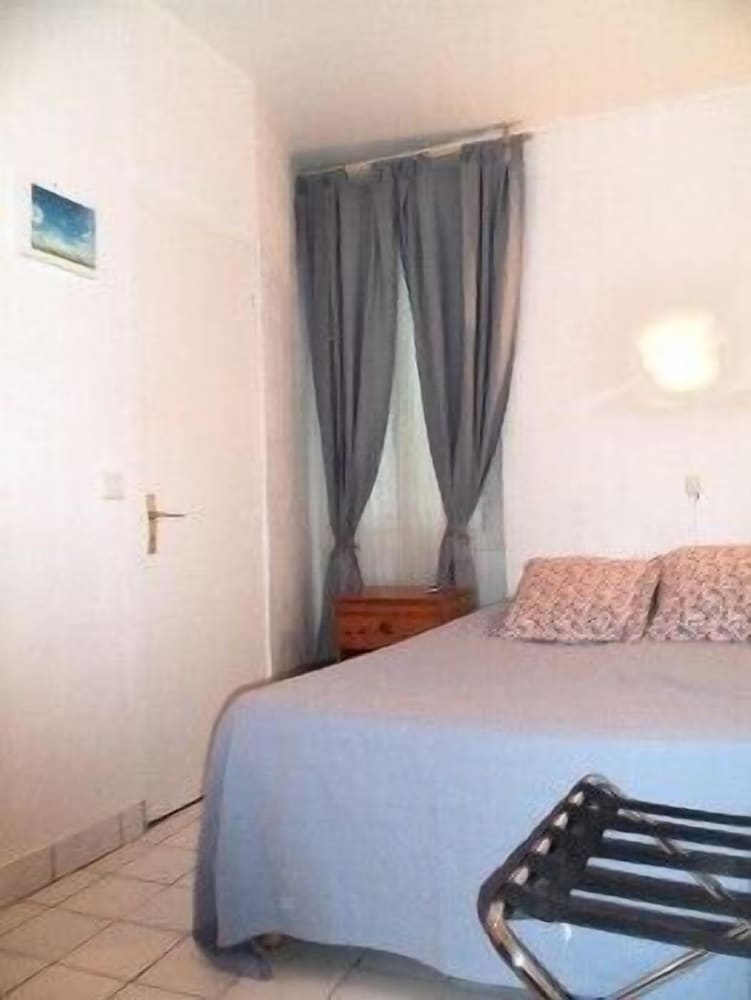 Hôtel bien situé dans le vieux Menton à 2 pas de la mer, calme. Chambre au 1er faisant face à un immeuble très proche, donc très sombre et aucune visibilité. Carrelage sol et douche, fêlés. Robinets de douches à l'extérieur de la douche, rideau très long, pas pratique. Cintres rouillés. Tringle rideau de la fenêtre qui ne tient pas et en mauvais état, est tombée lorsque j'ai tiré le rideau. Portant instable, il a failli se renverser. Je n'en ai pas eu besoin en cette saison mais ventilateur rouillé. Très mauvaise réception des chaînes télé, impossible de suivre un programme. Couloir de l'hôtel dans un état déplorable. Lit assez confortable mais draps avec trous. Salle pour le petit déjeuner sans fenêtre, chaises en plastique pas très propres. Très décevant quand on arrive après un long voyage et qu'on veut se poser on a qu'une envie, ressortir.