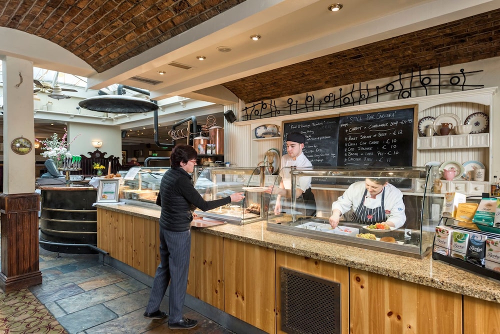 Great hotel, location ideal for travelling from any direction. Room was comfortable, clean and well stocked with tea/coffee. We ate in the hotel both nights and food was lovely. Breakfast was plentiful and enough variety to cater for most tastes. Staff were very helpful and friendly. Pool was great size.