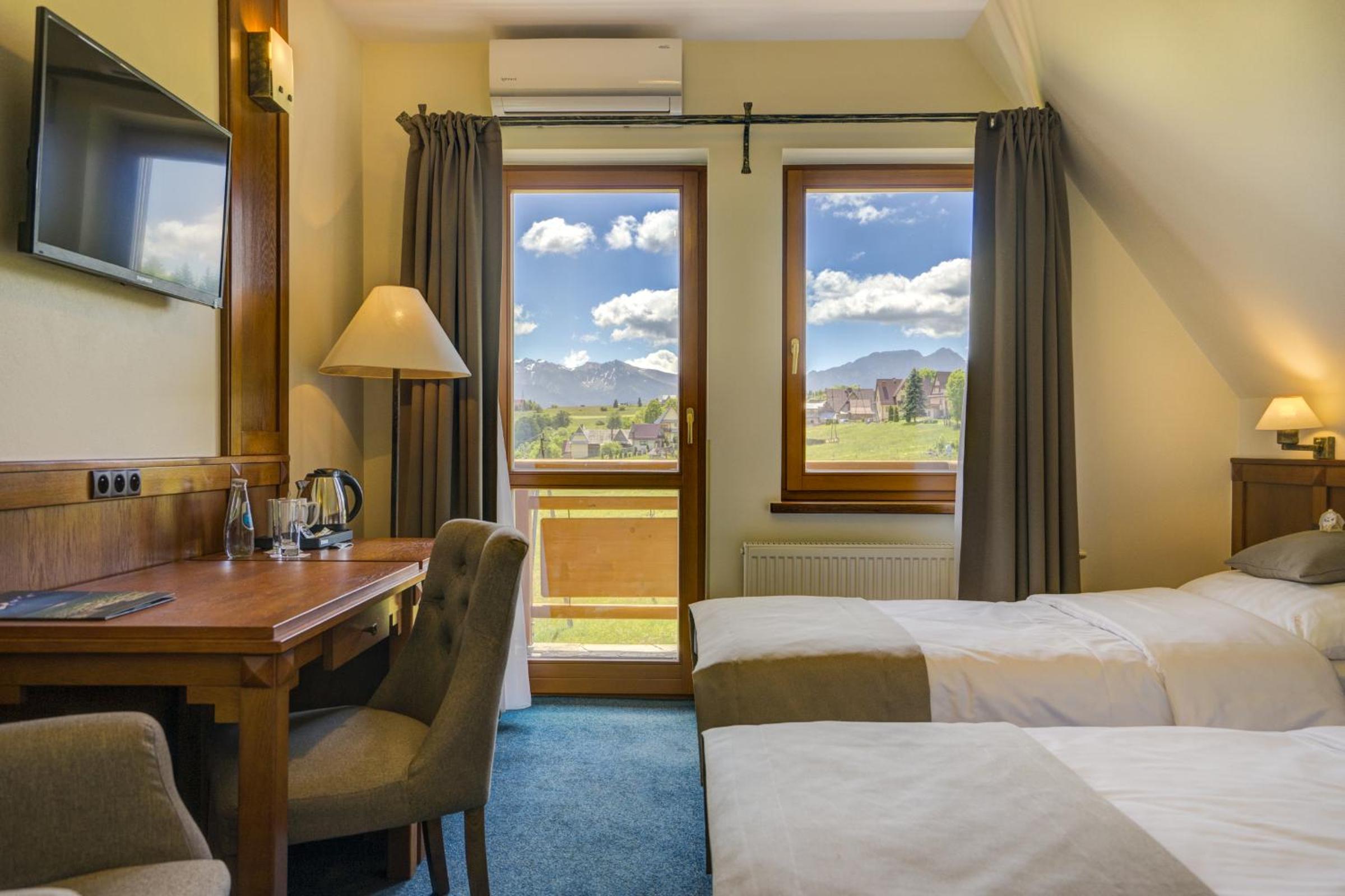 Widok na góry niepełny, tzn. Tatry widoczne tylko z boku, z balkonu, z pokoju nie.
