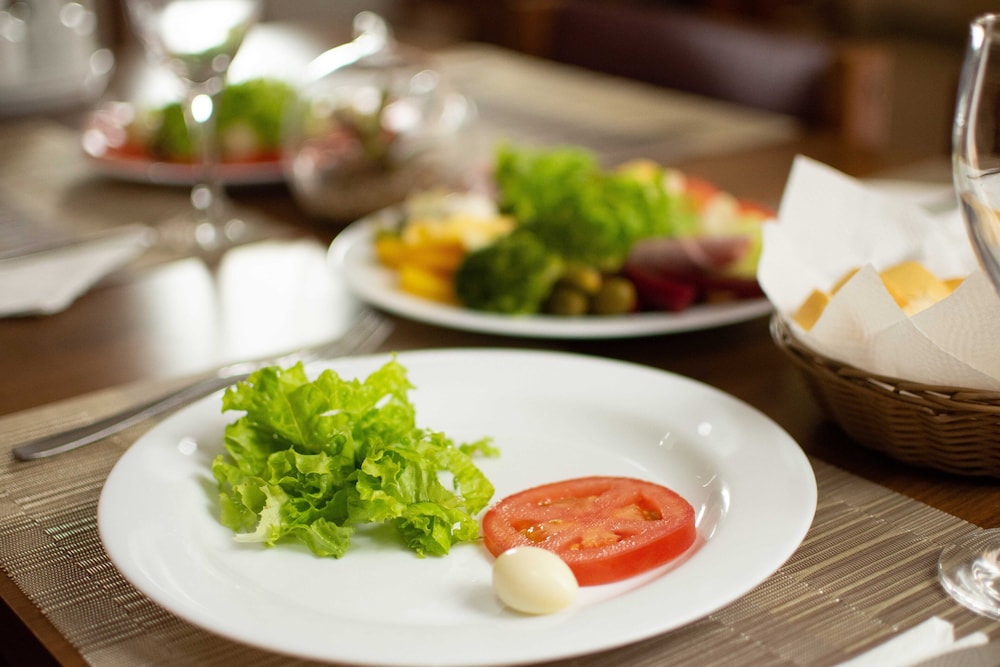 Café da manhã bom, funcionárias do café e da limpeza excelentes, educadas. Quarto ok, ducha bem boa. Hotel grande. Estacionamento cobrado porém não coberto e pouco seguro… rapazes da recepção regulares, não foram tão legais quanto o pessoal da limpeza e da comida não… partes péssimas: informou que tem sauna porém a sauna parece esquecida há tempos, está “quebrada”. E a acústica dos quartos é ridícula, a pior que já fui, é possível escutar tudo… mal dormimos umas noites pelo ronco terrível de um hóspede ao lado. Então assim, no geral experiência ruim. Qualidade sono afetada. Não vale o valor pra não dormir pelo ronco do quarto ao lado sabe?