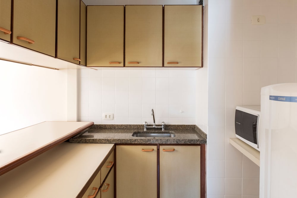 Tudo impecável. Pertinho da Av. Paulista, silencioso, um flat com talheres, micro-ondas, geladeira, tv. Ótimo guarda-roupas. Só a cama de casal, um pouco pequena e o colchão deveria ser trocado pois está levemente afundado ao meio. O Café da manhã, abundante e com muita variedade. Tem estacionamento amplo. Recomendo !