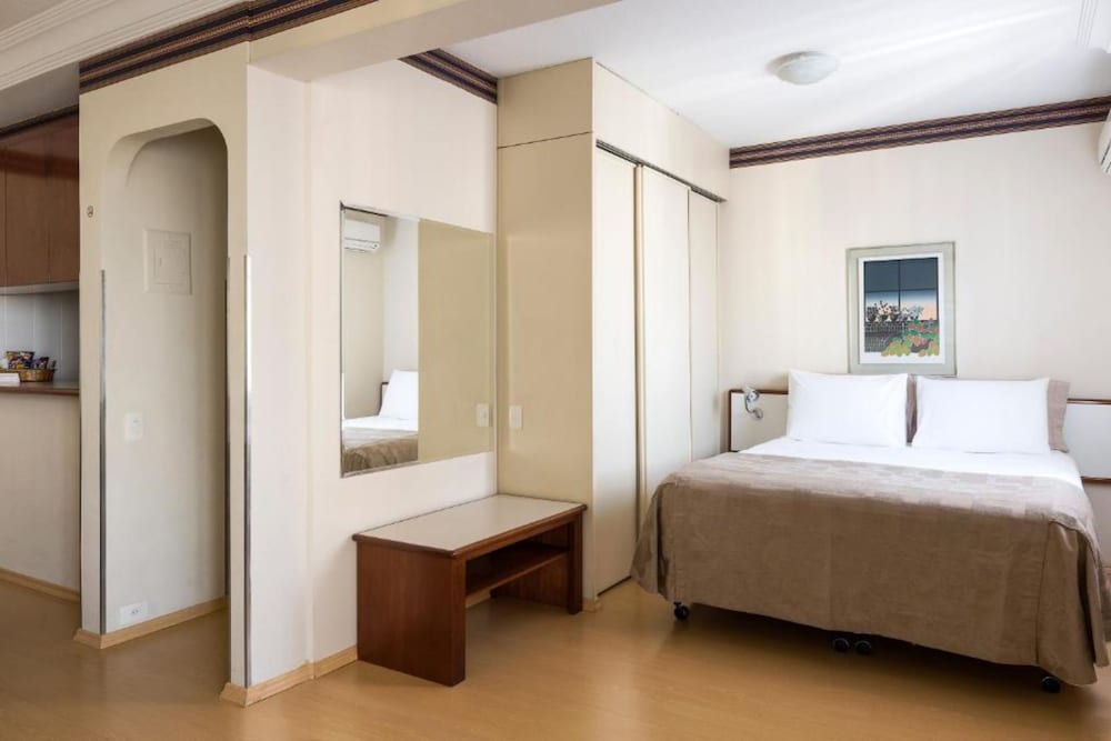 O quarto era limpo e bem arejado. Tinha pia, micro-ondas e frigobar. Gostamos do restaurante que fica no Hotel, pedimos algumas refeições nele (almoço e janta) e eram bom custo/benefício. Outro ponto positivo é a localização, a três quadras da Avenida Paulista, bem perto do MASP e da Estação de metro