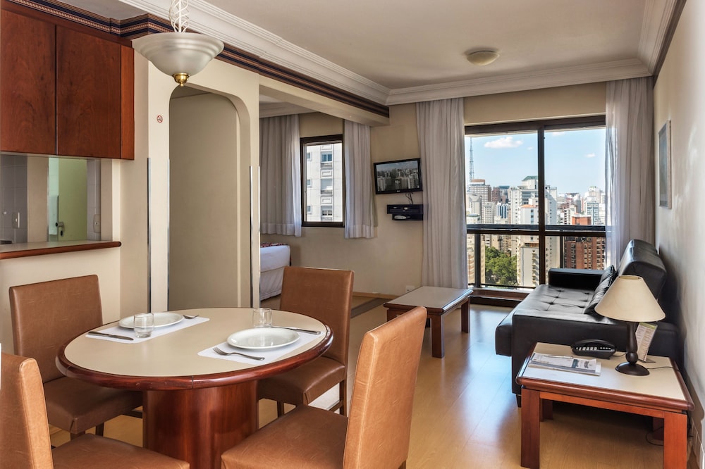 A localização do hotel é boa, há dois quarteirões da Paulista, há bares (Boa Praça e Savana), restaurantes e um Mac próximos. Só não é melhor pq pro outro sentido, que fica a Oscar Freire, é um ladeirao (do hotel pra Oscar Freire é descida, mas a volta é uma subida longa e íngreme). Outro ponto que eu acho que vale a pena citar é o seguinte: Sao Paulo tá com mto flat onde nao há uma flexibilidade de horário pra check in. Nesses flats nao há propriamente uma recepção e é tudo feito digital, o check in é só as 15h e nao libera antes. Entao pra quem pega um voo mto cedo, como foi o meu caso, é interessante pegar um hotel onde há a possibilidade de fazer o check in antecipado. Esse foi um dos motivos que me fez escolher o Central Park e a minha escolha deu certo, cheguei no hotel por volta de 11h da manha e já fui acomodado, ponto mto positivo pro hotel. A piscina é no terraço e a água é morna, lugar bom pra relaxar. O café da manha é mto bom, servido no restaurante que funciona 24h (de madrugada serve sanduíche e no almoço é no quilo). O apartamento é melhor nas fotos, ao vivo ele possui moveis mais antigos. É mto espaçoso, é um apartamento com quarto, sala e cozinha. Não sei se havia utensílios pra cozinhar pq nao tentei. O Staff do hotel é mto bom, todos cordiais e prontos pra ajudar. Ponto negativo é que é uma região barulhenta, há obras nas proximidades que incomodam.
