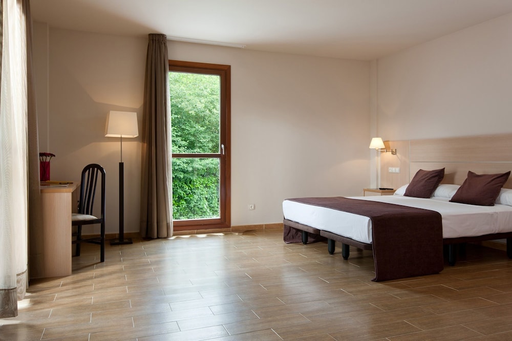 Hago la reserva para dos adultos y una niña, y cuando voy a pagar me cobran 25 euros noche por suplemento de dormir en un sofá. Ojo al balneario tiene coste adicional de 34 euros por pareja y 10 los niños, con 1 hora de circuito en un spa, por que no son aguas termales en la piscina grande. En la habitación tuvimos hormigas. EL PERSONAL MUY AMABLE