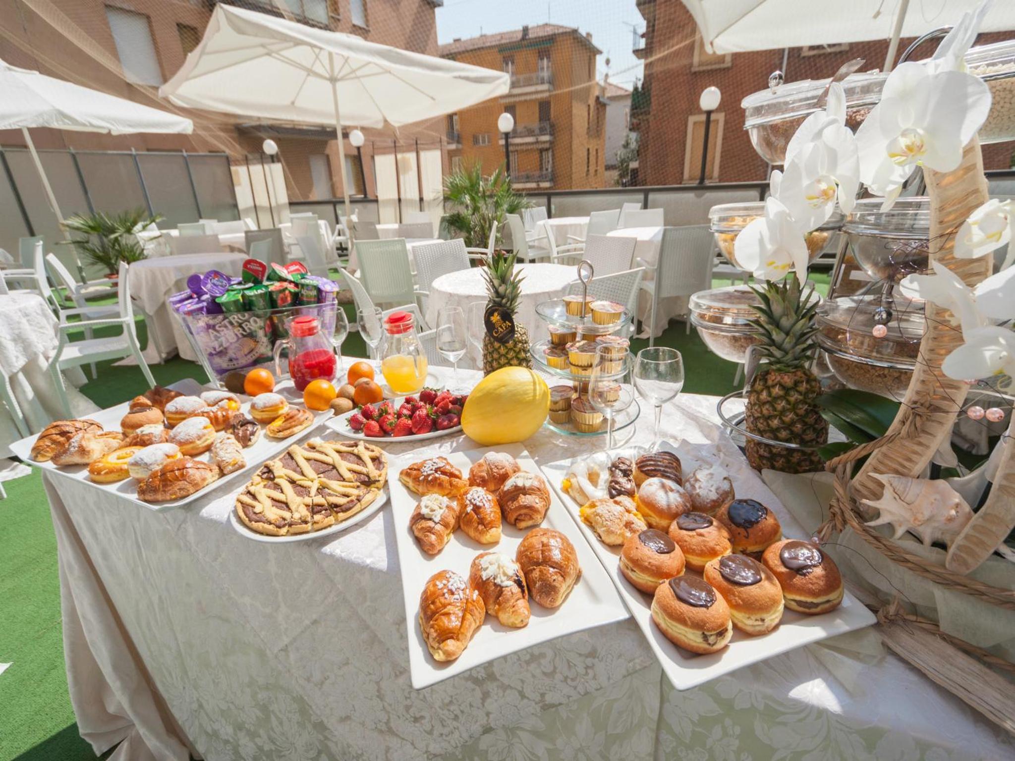 Start your day with a delicious continental buffet served in the elegant Sala Fellini breakfast room. Enjoy your morning coffee on the charming Dolce Vita terrace, soaking in the vibrant atmosphere. Nearby supermarkets and restaurants provide convenience and culinary variety.