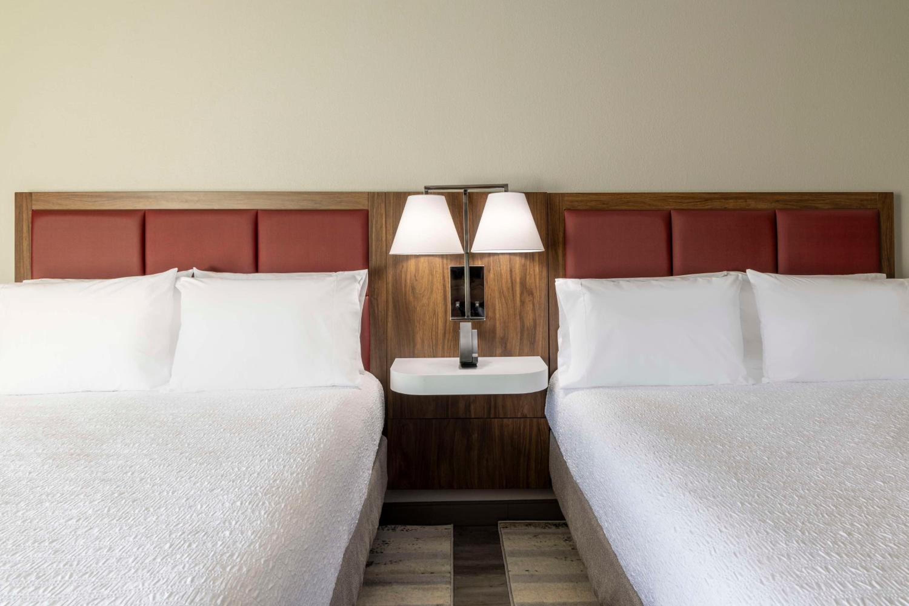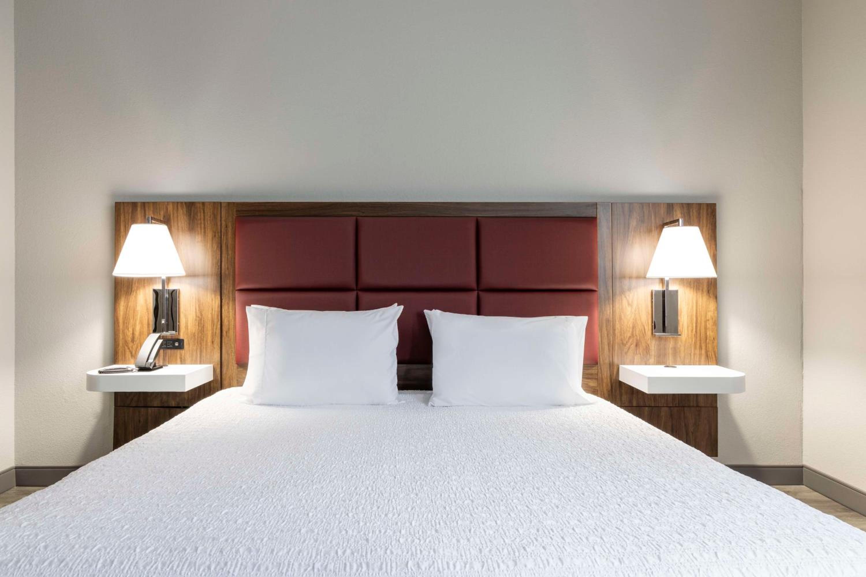 We were in room 307. The kingbed was very uncomfortable. One side of the bed was creaky but the other side was like sleeping in a hole and made noise with every move as if it was broken through to the frame. Also the air conditioner was very loud and clanky when it was circulating air. We did not sleep at all. I had an appointment the next morning for surgery at 7:00am. Needless to say we were very tired and sick. One last thing…the chain lock was broken. We are members at Hilton which includes Hampton. We should have received better treatment including better room accommodations.