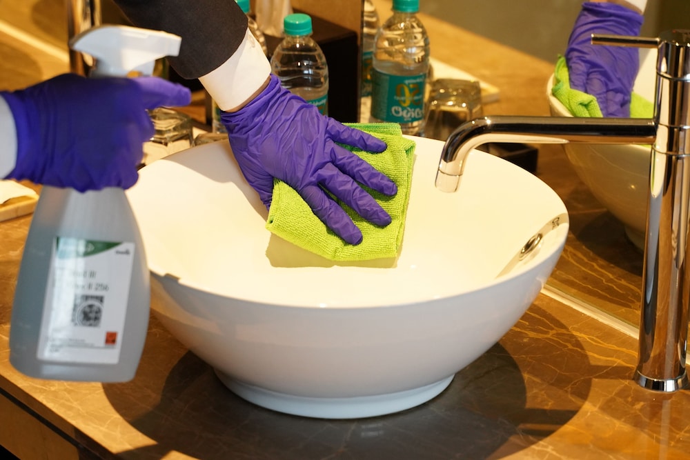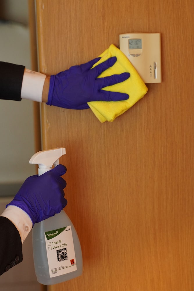 Property follows a brand or regulatory agency's sanitization guidelines Commitment to Clean (Marriott)