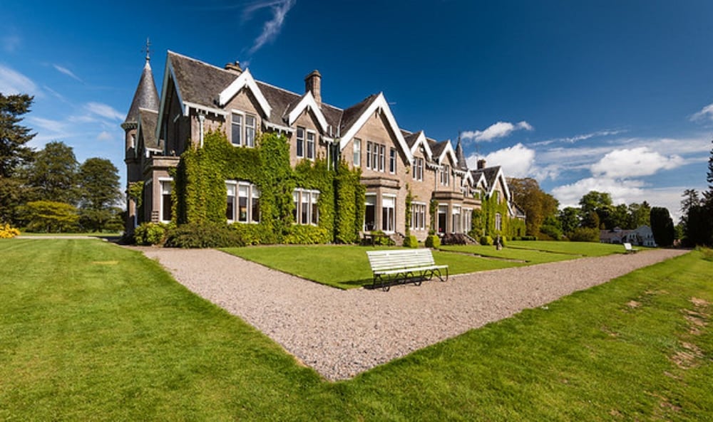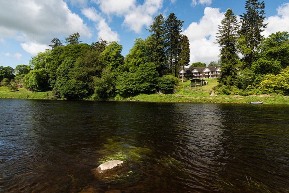 Escape to Ballathie Country House Hotel and Estate, a stunning Edwardian hotel located on a picturesque riverbank. The property offers exciting recreational activities such as bicycle rentals, a beautiful terrace, and a lush garden for your relaxation.
