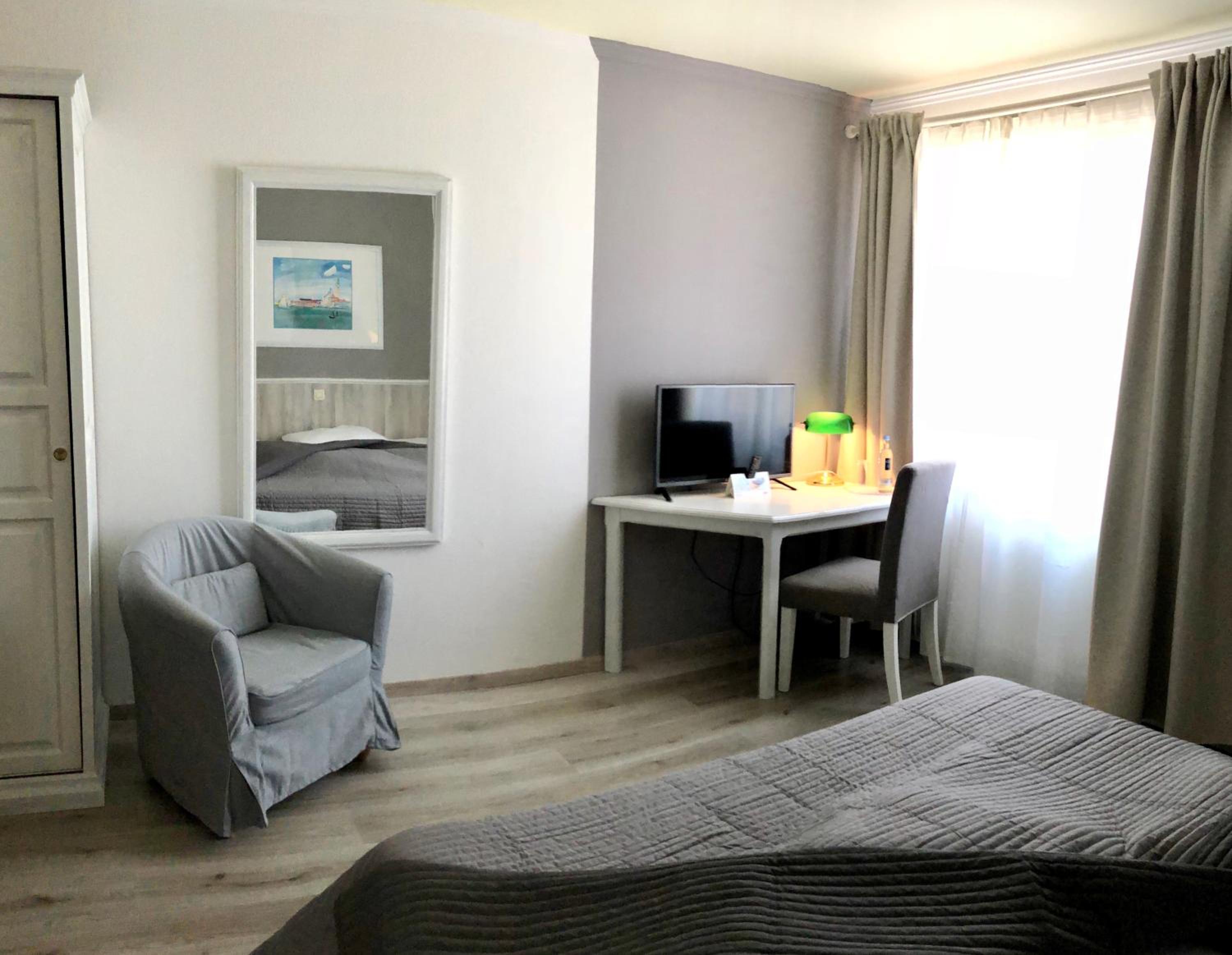 Der Empfang war freundlich. Es gab kostenlosen Kaffee in der Lobby. Das Zimmer war zwar klein mit älteren Möbeln und hatte nicht die angekündigte Terrasse, aber das Bett war bequem und draussen war es ohnehin zu nass und zu kalt, um auf einer Terrasse zu sitzen ;- )