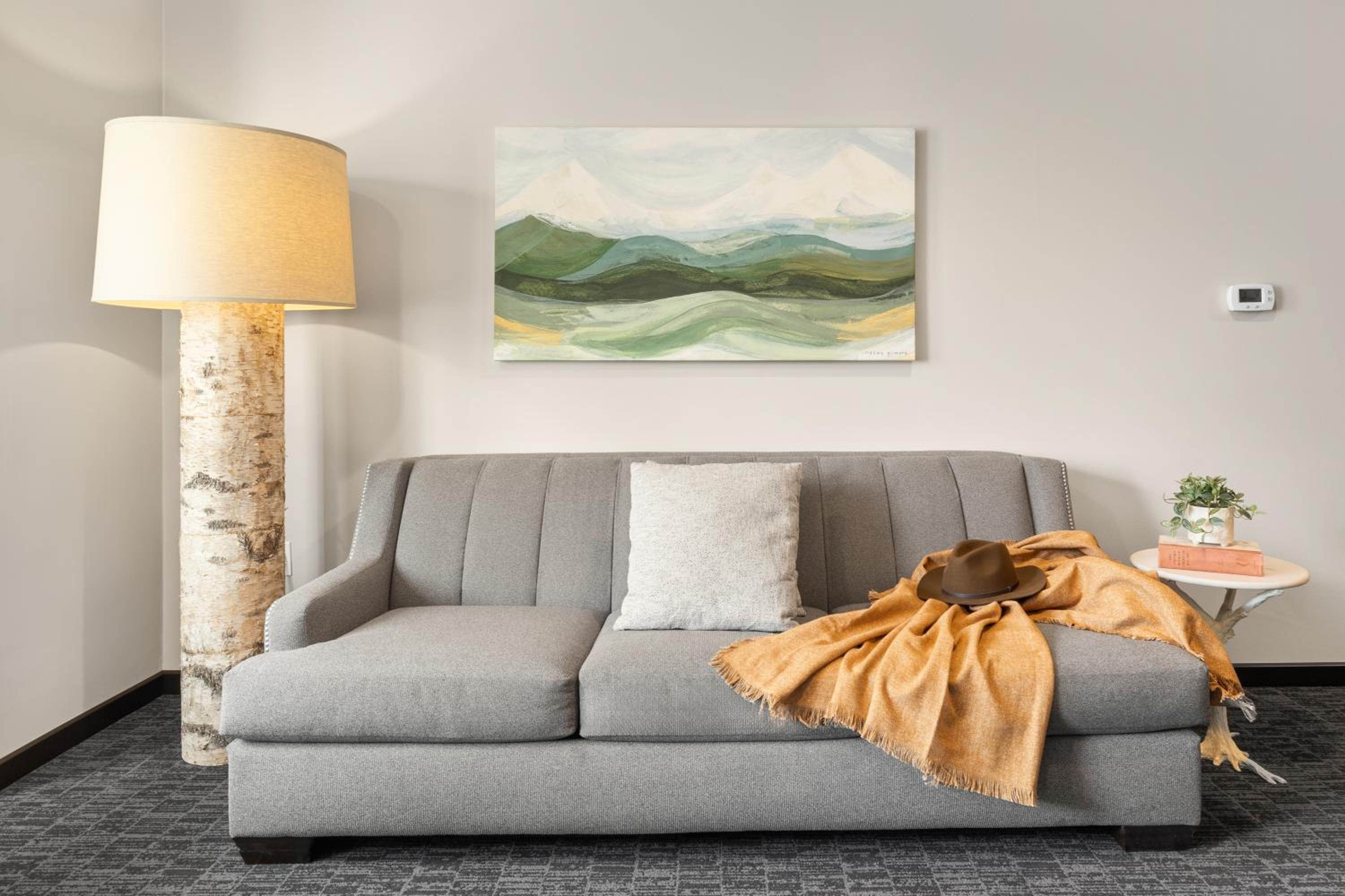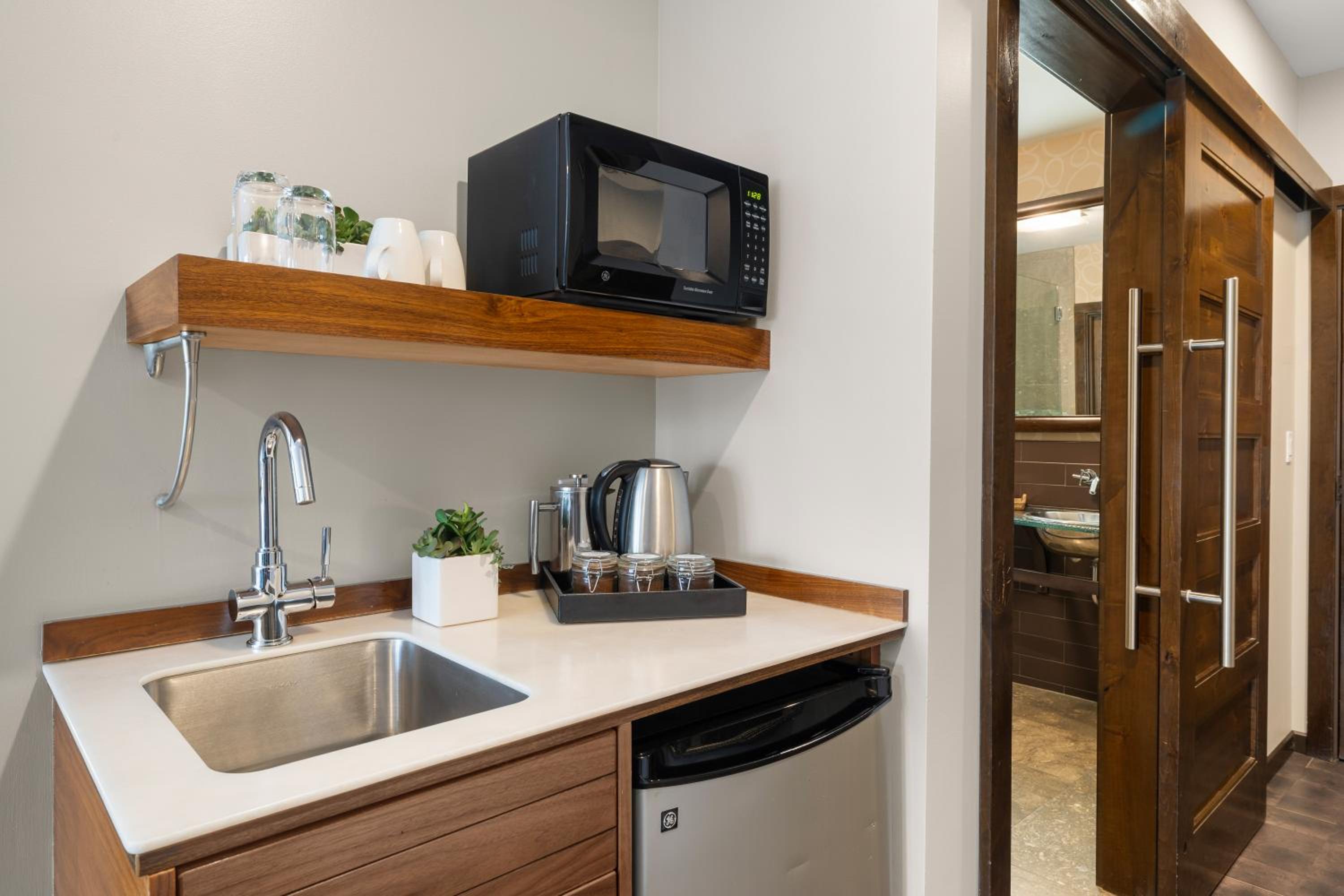 We loved this hotel. Stayed in room 210 a corner unit with a balcony. The size is really nice, loved the area with pressed coffee, high end coffee choices and upgraded teas, fridge and microwave. The bathroom is beautiful with a separate water closet. Loved the tub and huge shower. There is a pillow choice, robes and slippers, sofa, sitting area. It’s very nice. The lobby is beautiful with a fireplace to enjoy. Service is impeccable. You can walk to any restaurant or shop downtown Bend. It’s just the right size, not too big, cozy.