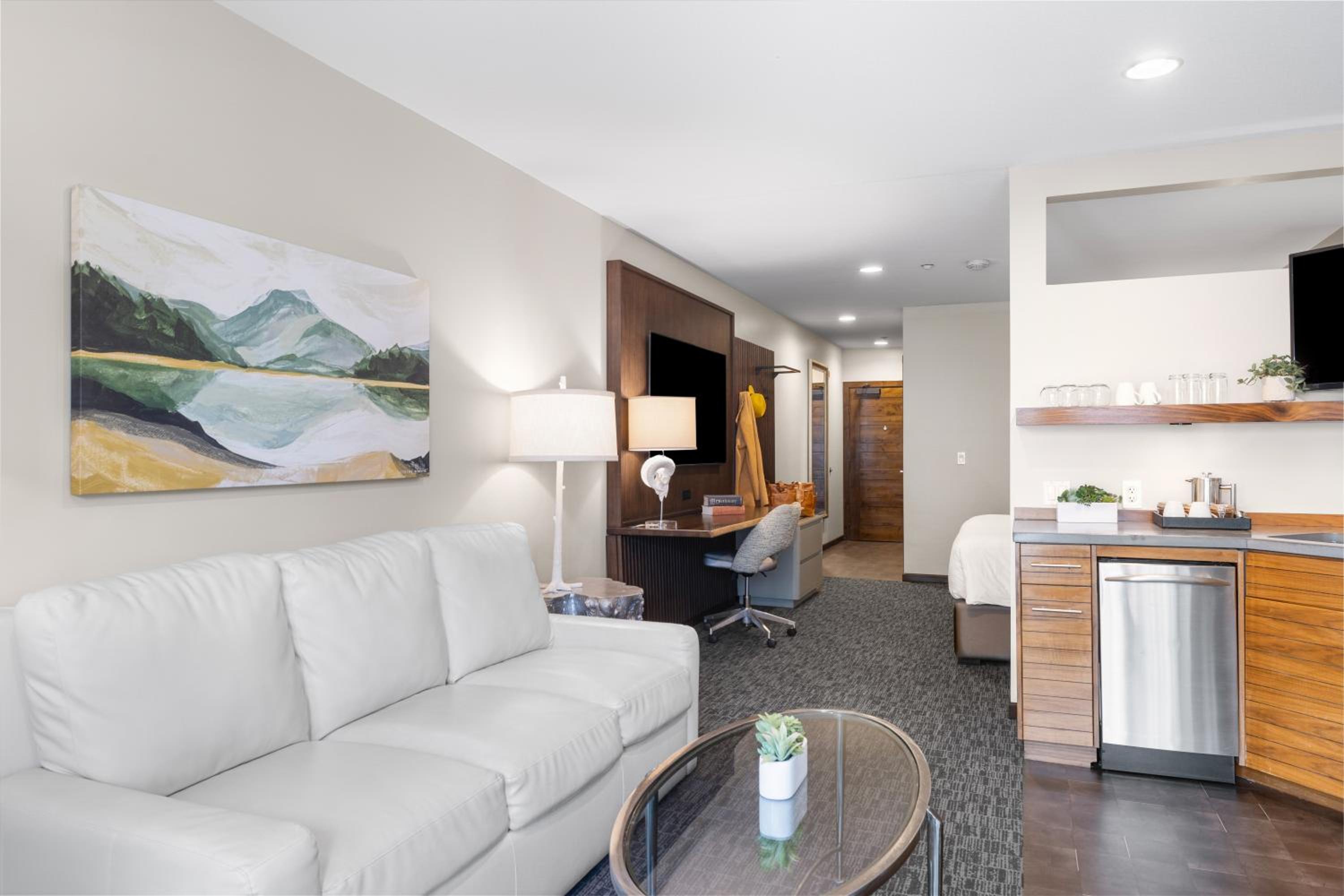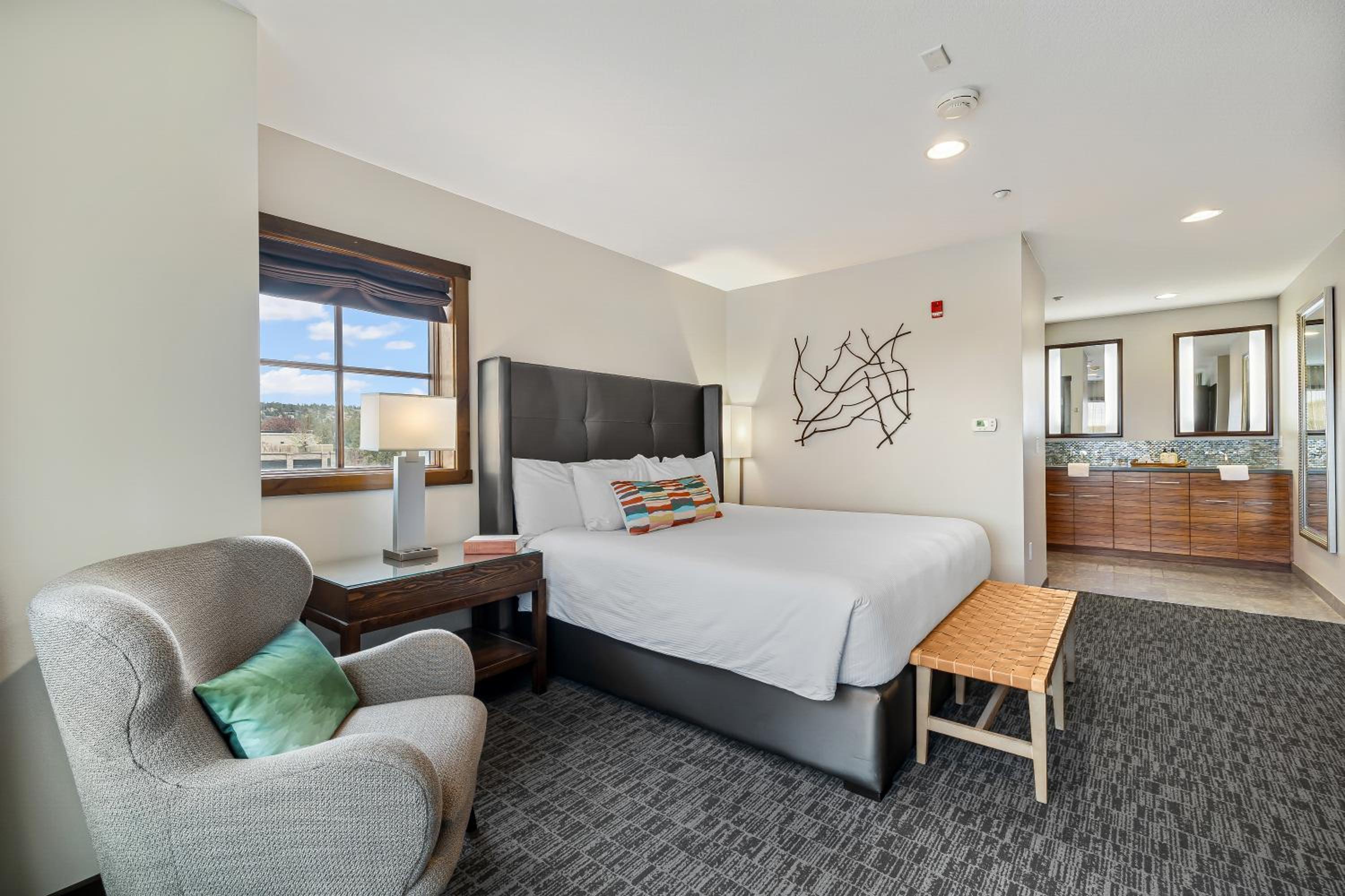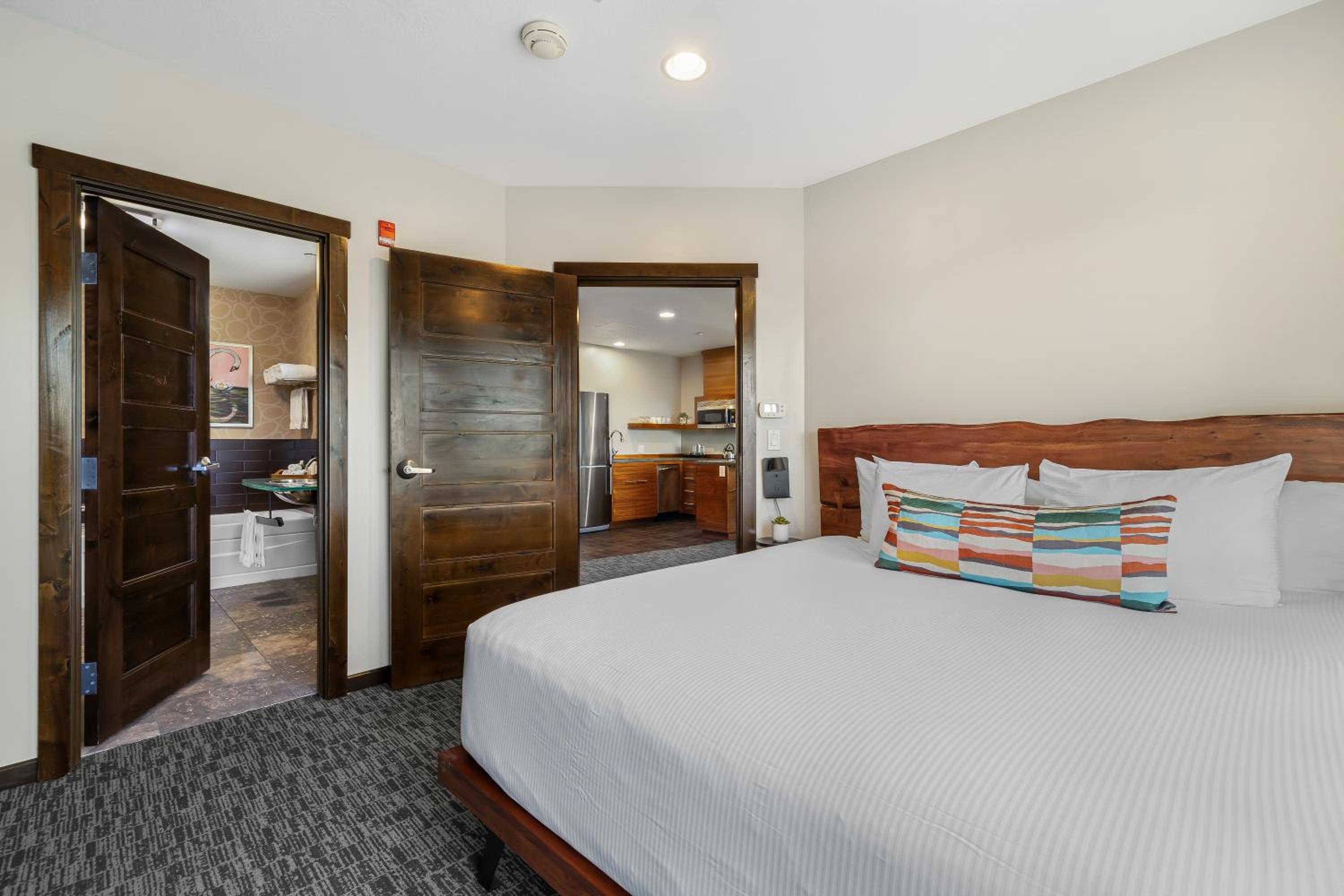 The Oxford Hotel Bend offers stylish and comfortable guest rooms equipped with modern amenities including flat-screen TVs, iPod docking stations, and organic bath products. Select rooms even feature fully equipped kitchens and balconies with scenic views, ensuring a relaxing stay for every guest.