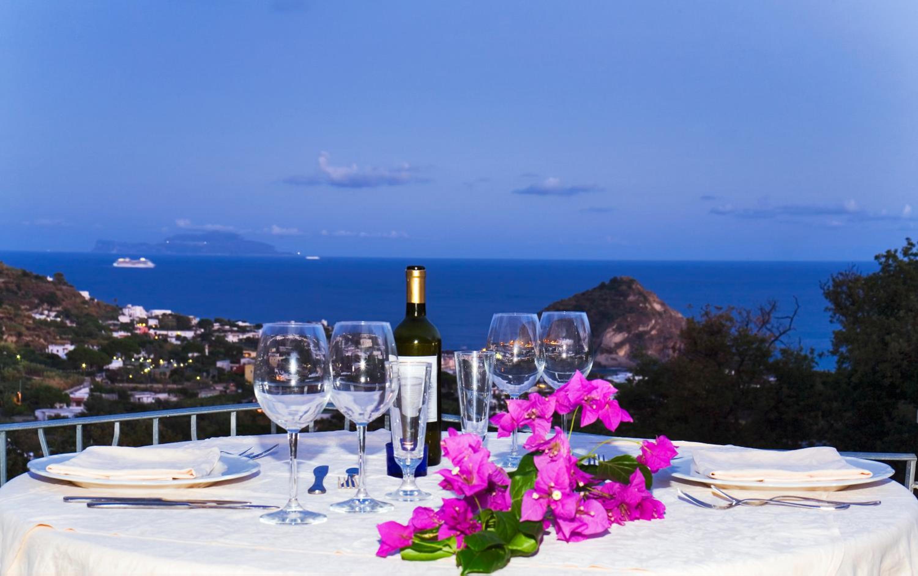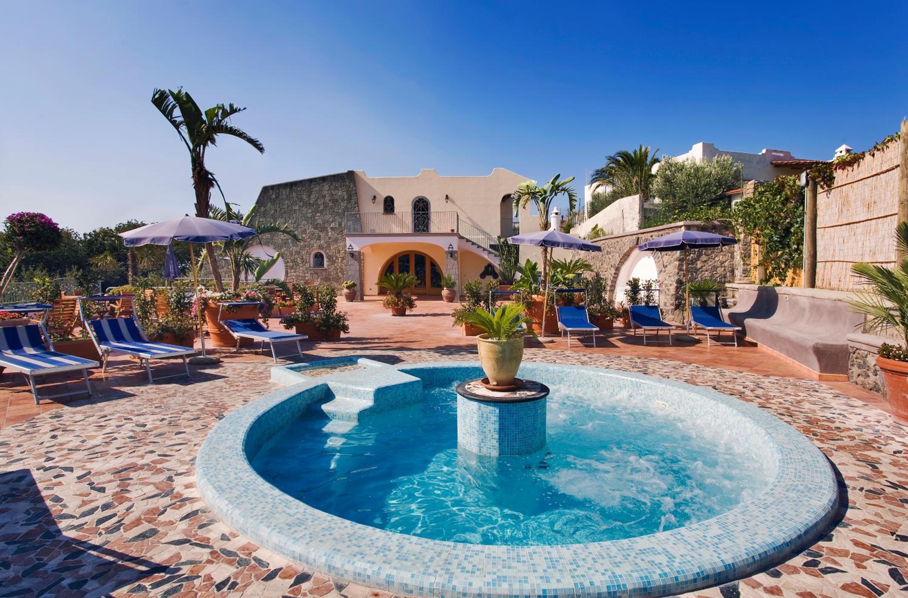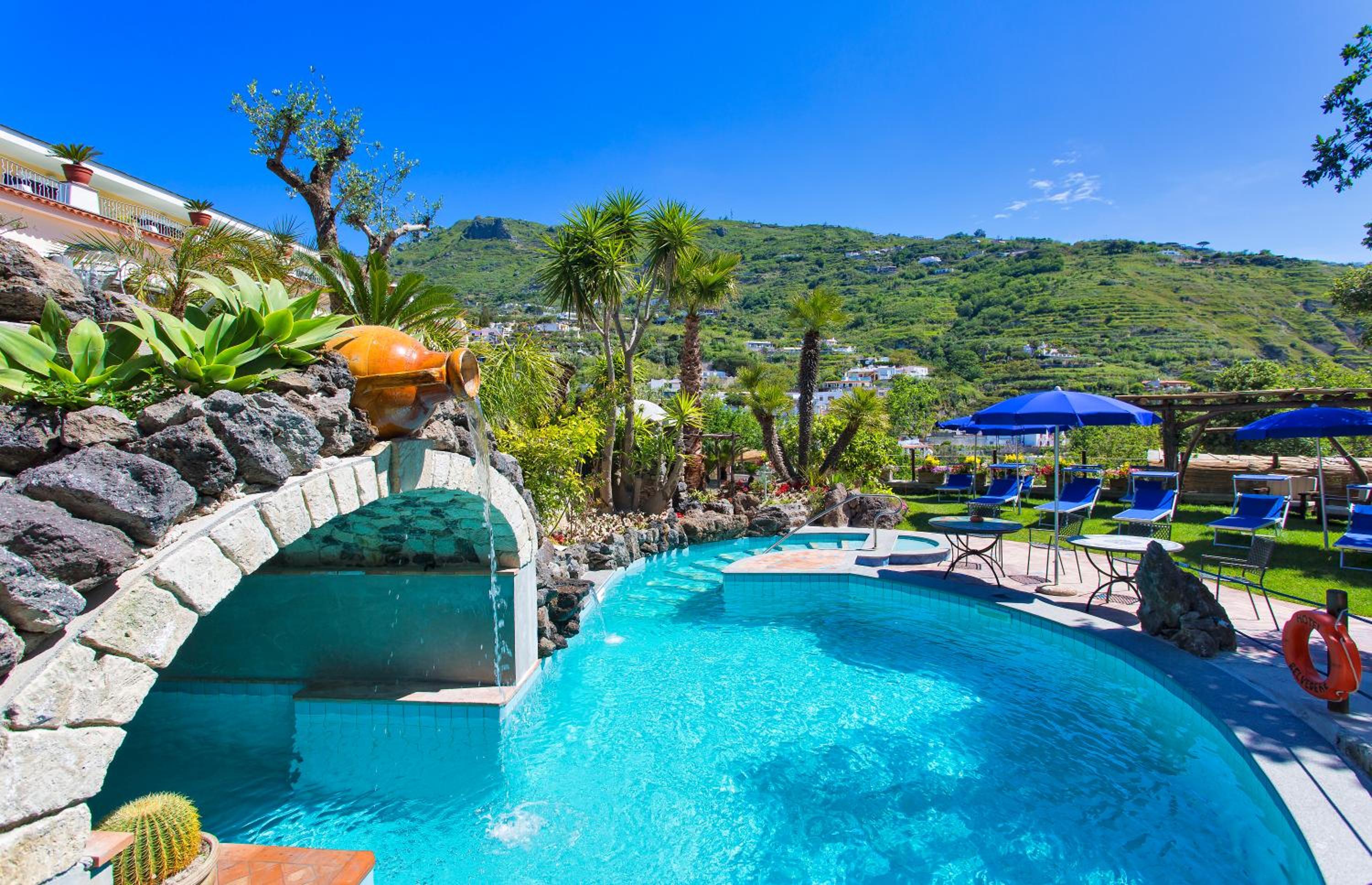 Hotel Belvedere in Panza offers a picturesque setting overlooking Sant'Angelo harbor. Guests can enjoy leisurely walks through vineyards to reach nearby thermal baths or take advantage of the hotel's outdoor pool with a hot tub area.