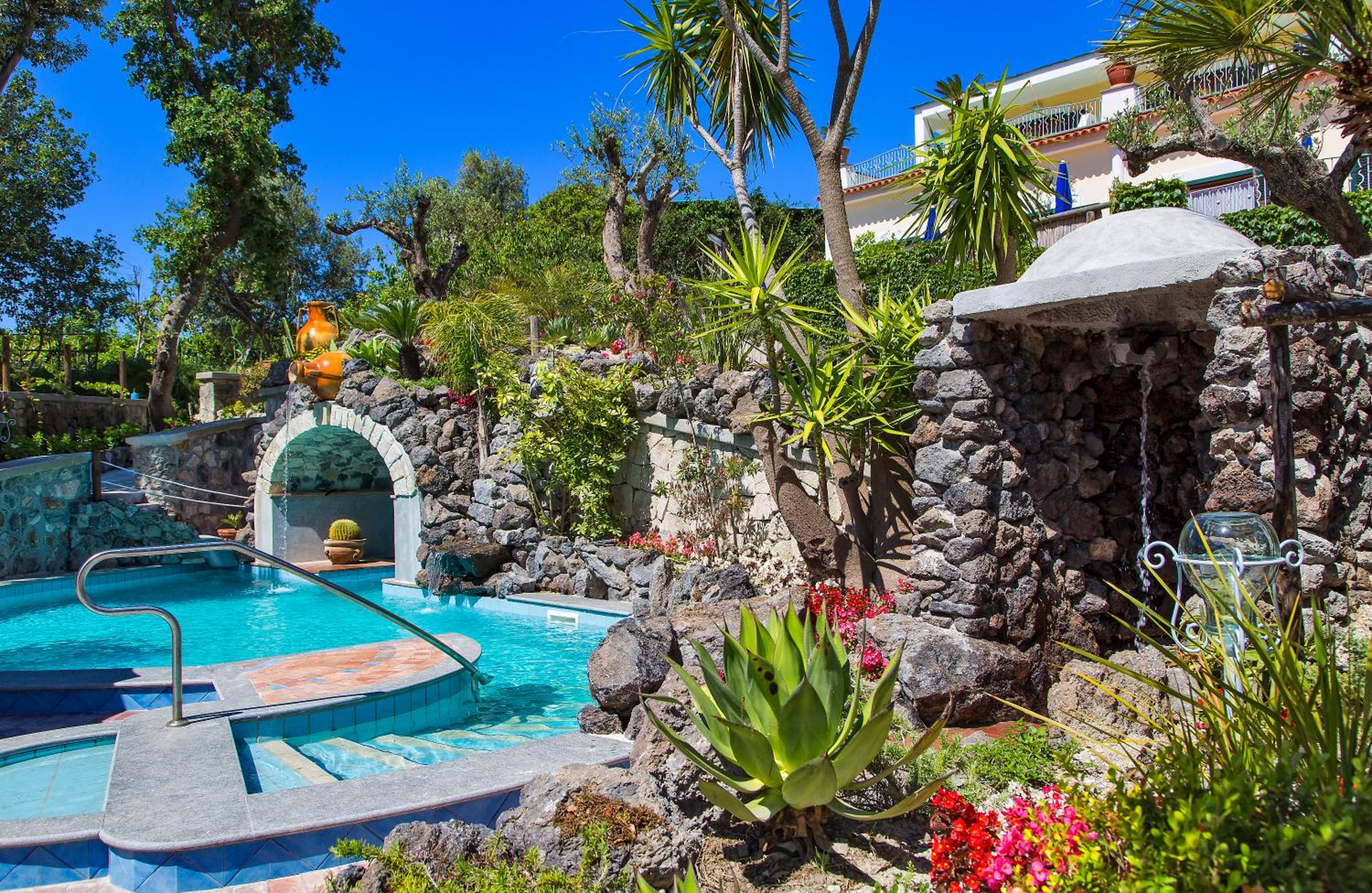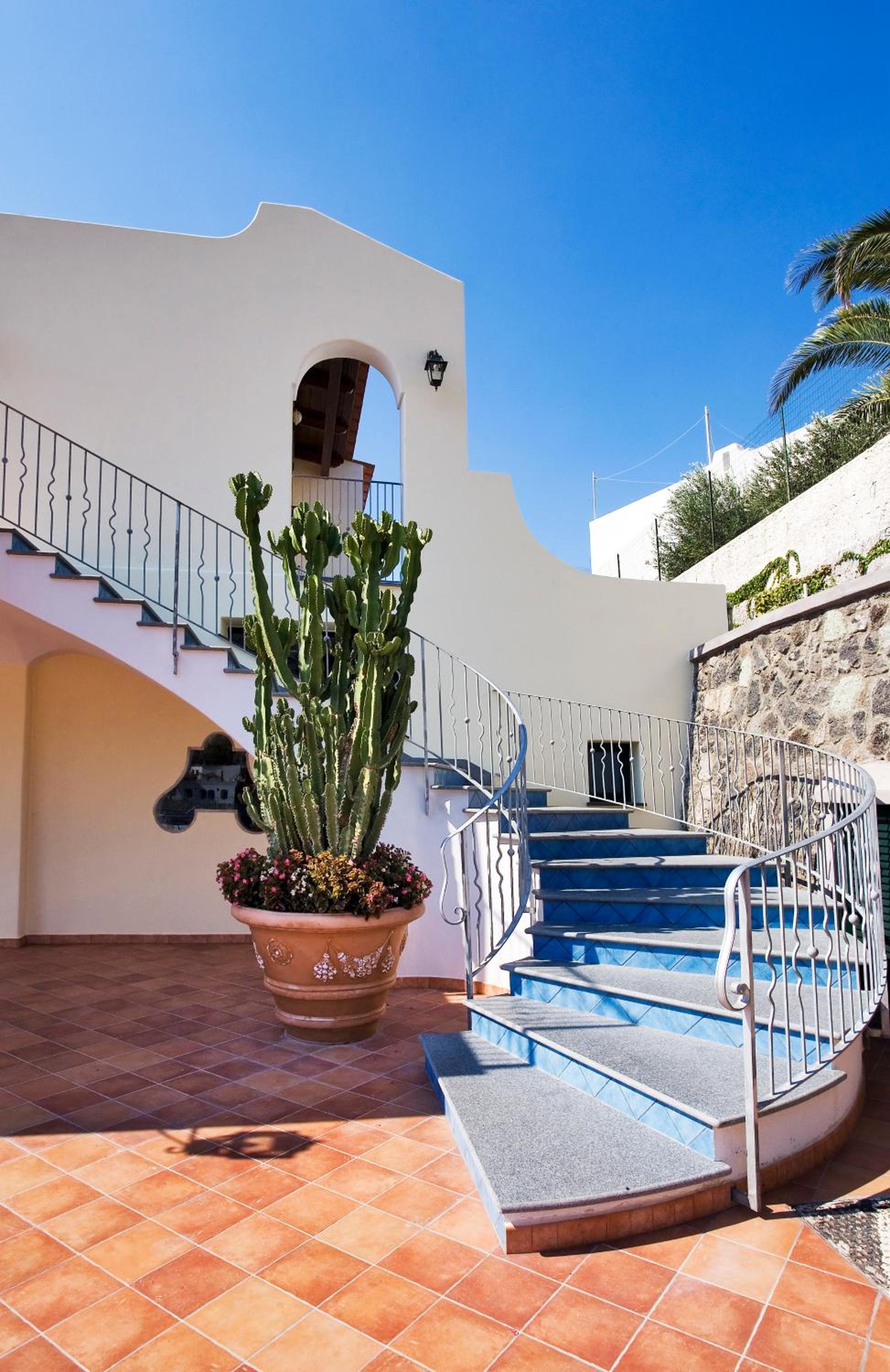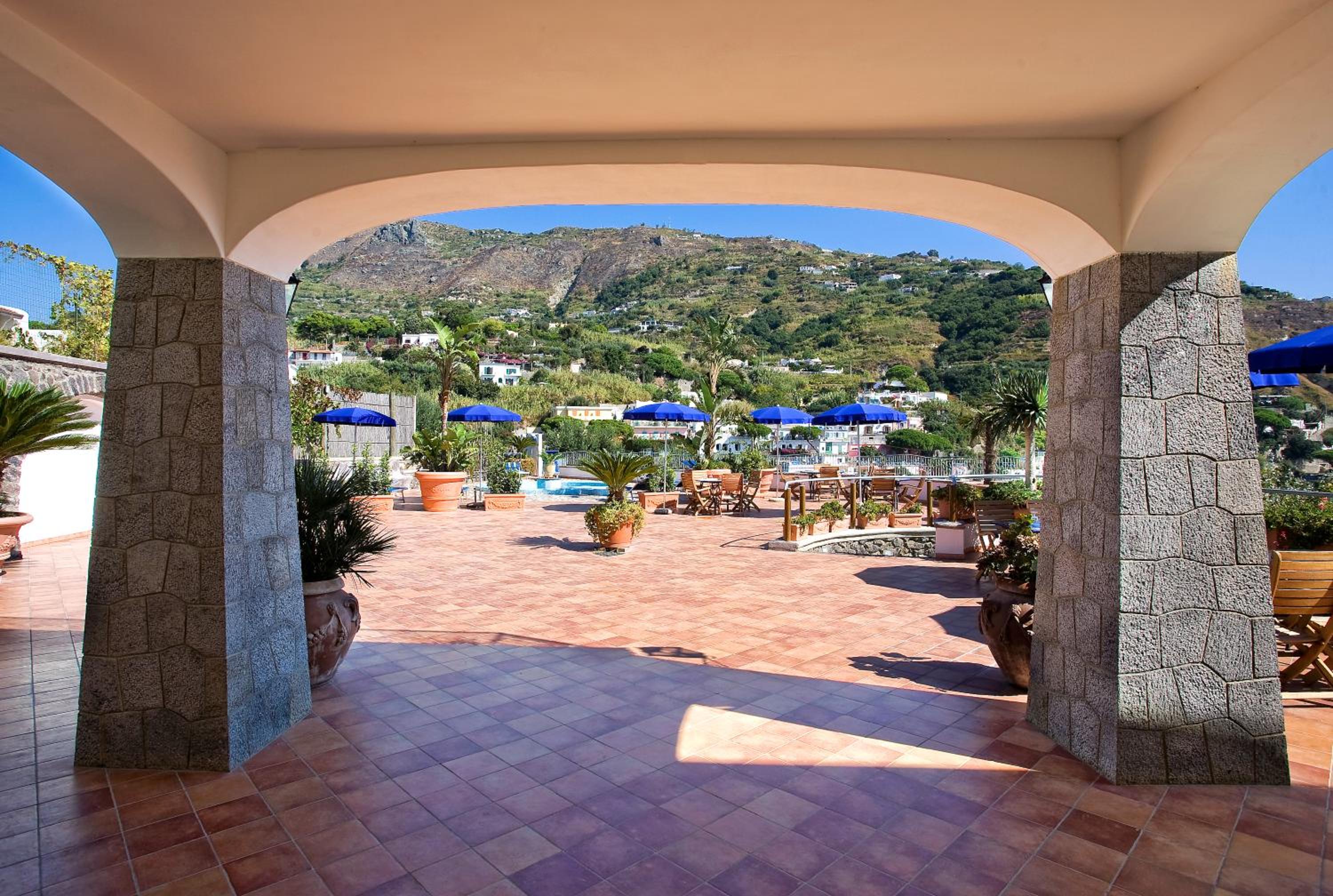 Hotel Belvedere in Panza offers a picturesque setting overlooking Sant'Angelo harbor. Guests can enjoy leisurely walks through vineyards to reach nearby thermal baths or take advantage of the hotel's outdoor pool with a hot tub area.