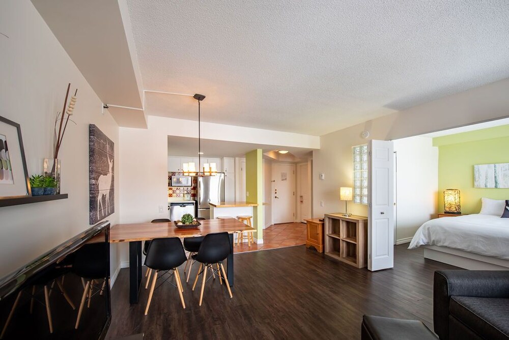 Neat and clean, there are market and restaurantes close by and the view of the mountains are stunning. And there’s free parking.