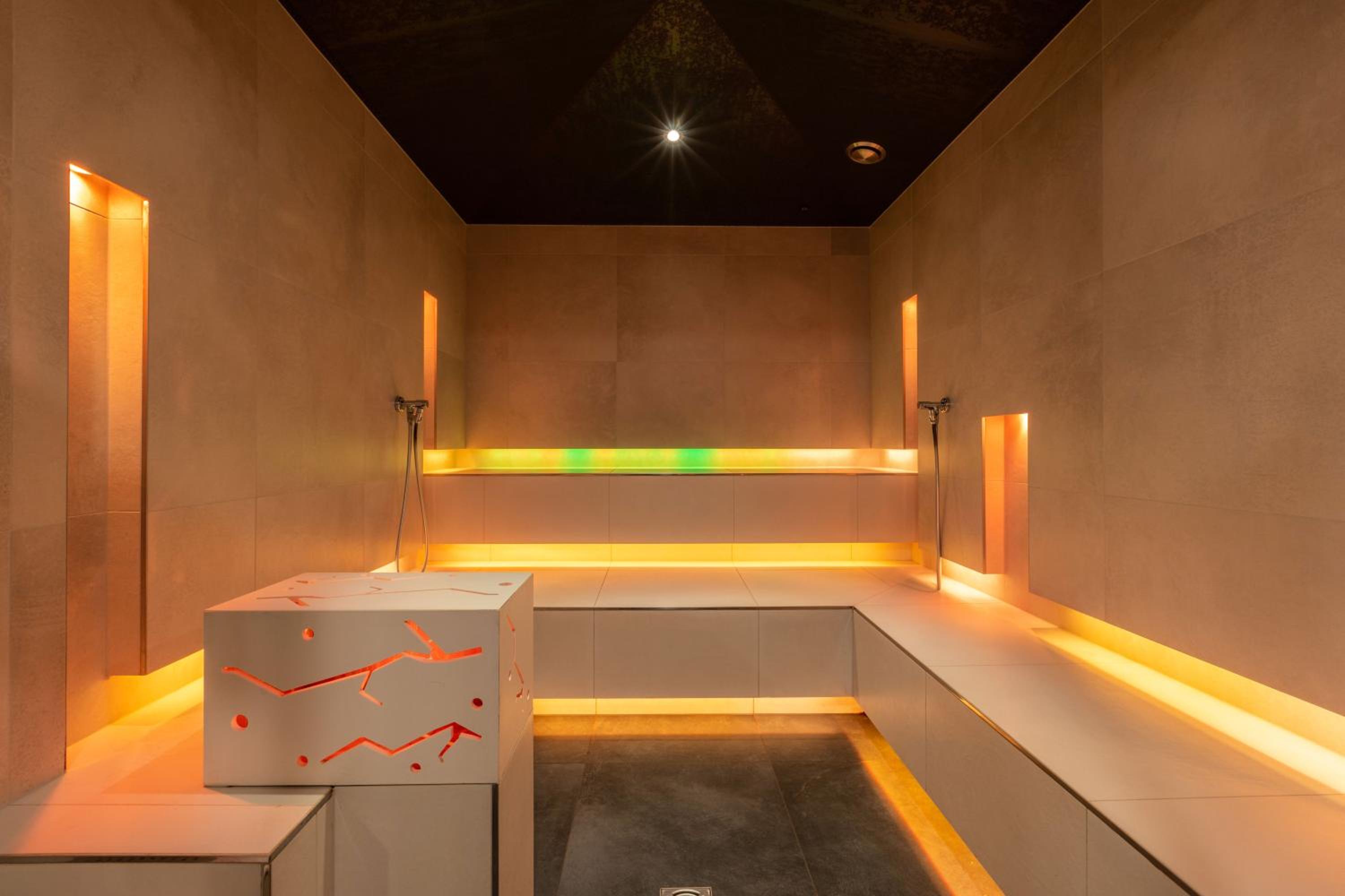 Der Saunabereich ist leider erst ab 15h geöffnet (ab 13h hätten wir als Nichtskifahrer toll gefunden) und dadurch oft überfüllt, außer zur Abendessenszeit. Außerdem kann man auf der Hälfte der Liegen in den Ruheräumen nicht mehr liegen, sondern nur noch sitzen, weil das Rückenteil festgeschraubt wurde. :-(
