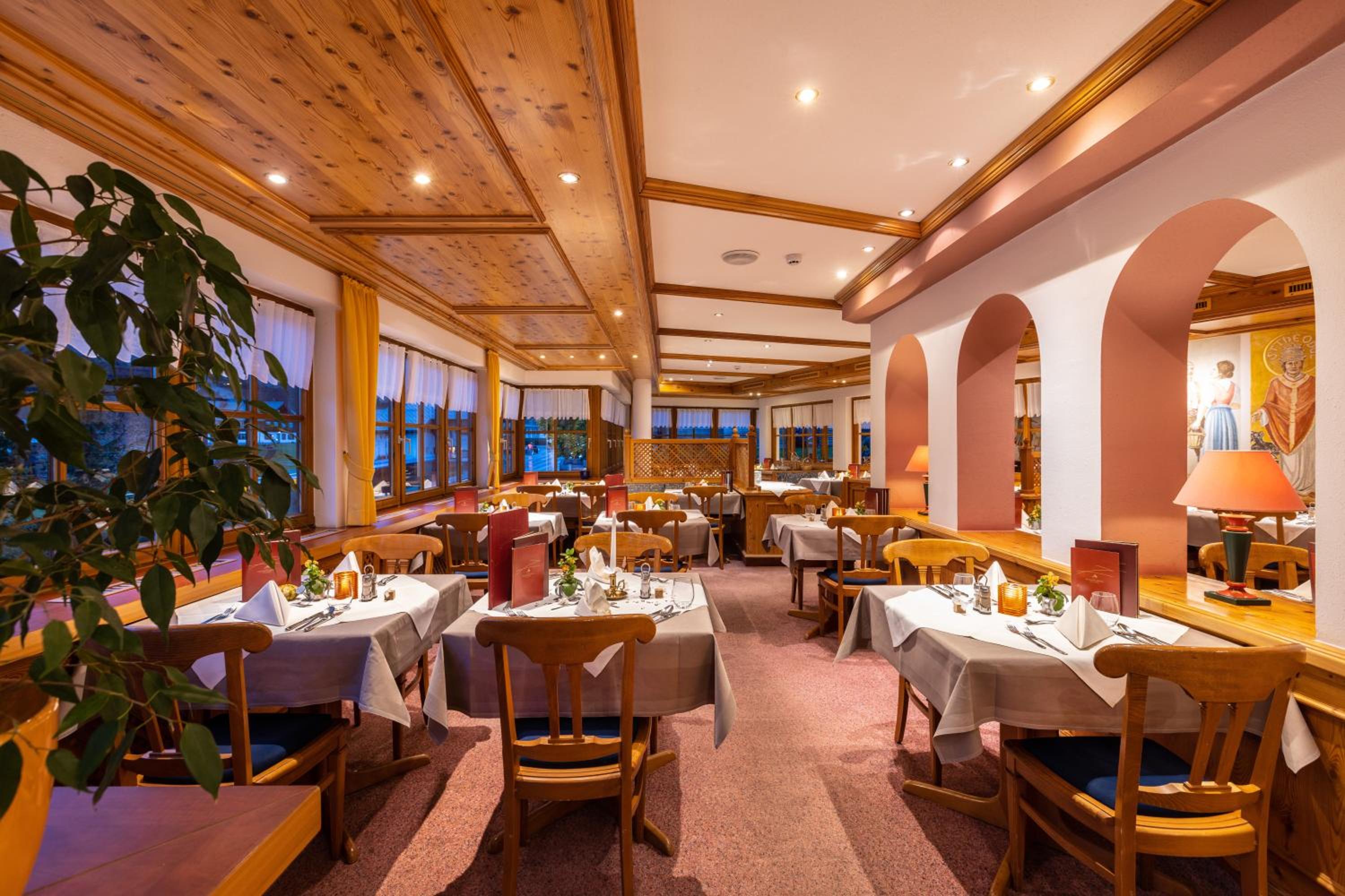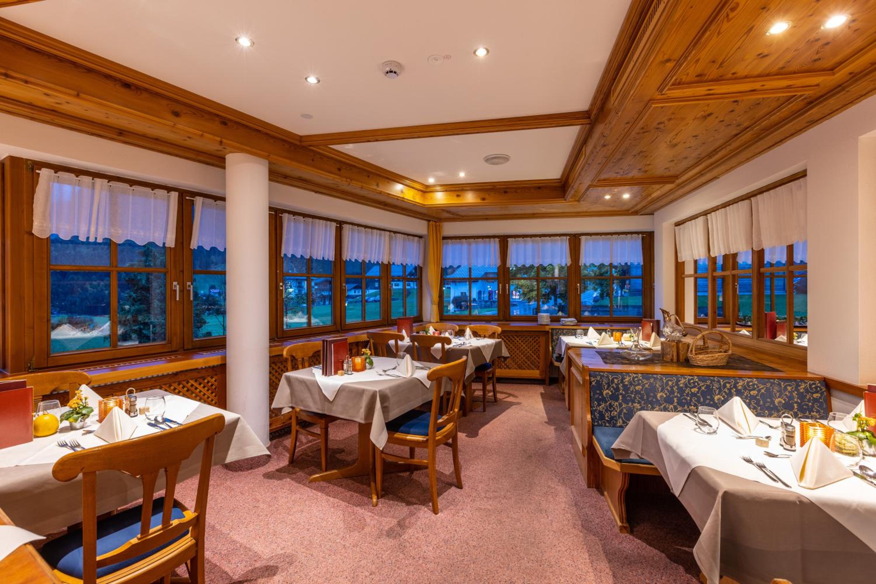 Das Frühstücks- und Abendbuffet waren hervorragend und sehr abwechslungsreich: eher vier Sterne als drei! :-) Zusätzlich gab es mittags kostenlos (!) zwei leckere Suppen, die man in der Hotelbar genießen konnte. Auch die geräumigen Zimmer mit den bequemen Betten, die Hotelbar mit großem Fernseher (für Fußballspiele), die beiden Saunen, das Dampfbad und der Pool haben uns sehr gut gefallen. :-) Außerdem waren der Skiverleih im Haus und die Bushaltestelle fast direkt vorm Hotel für unsere Söhne ideal!