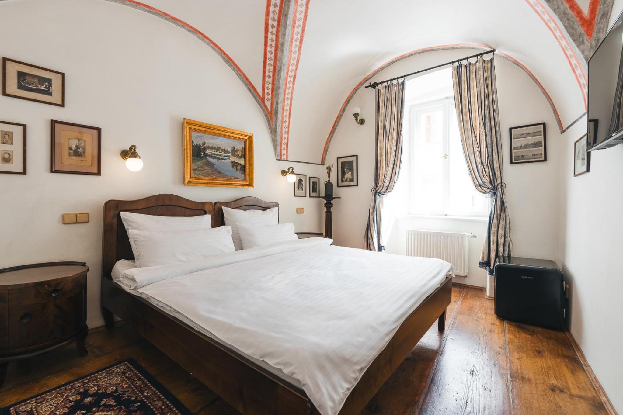 This newly re-built hotel, originally constructed in the 16th century, seamlessly blends historic charm with modern comforts. The Renaissance wooden ceilings and baroque staircase add a touch of elegance to the interiors, reflecting the rich history of Český Krumlov.