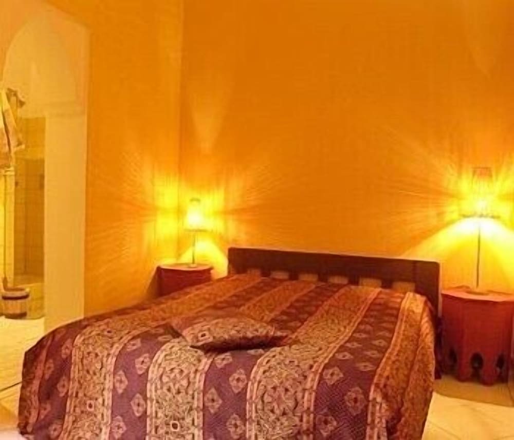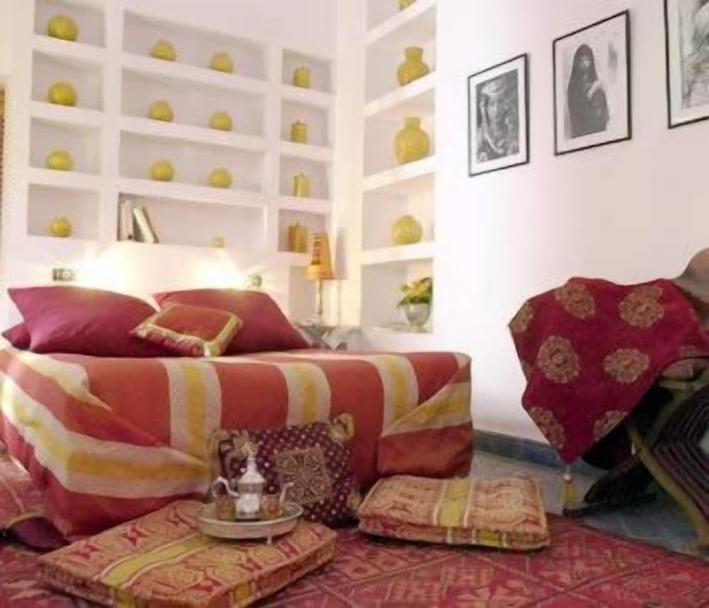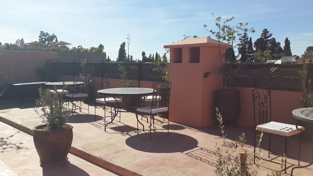 We were a group of 5 girls and rented 2 rooms, one in the main floor and the other in the 1st floor. Aziz was amazingly kind, pleasant and polite. We were picked up in the airport and they were waiting for us with a wonderful tea. Also the breakfast was superb. We made use of the small swimming pool and the terrace at night is absolutely amazing. Very quiet place, peaceful and 5 minute walking from the main place.