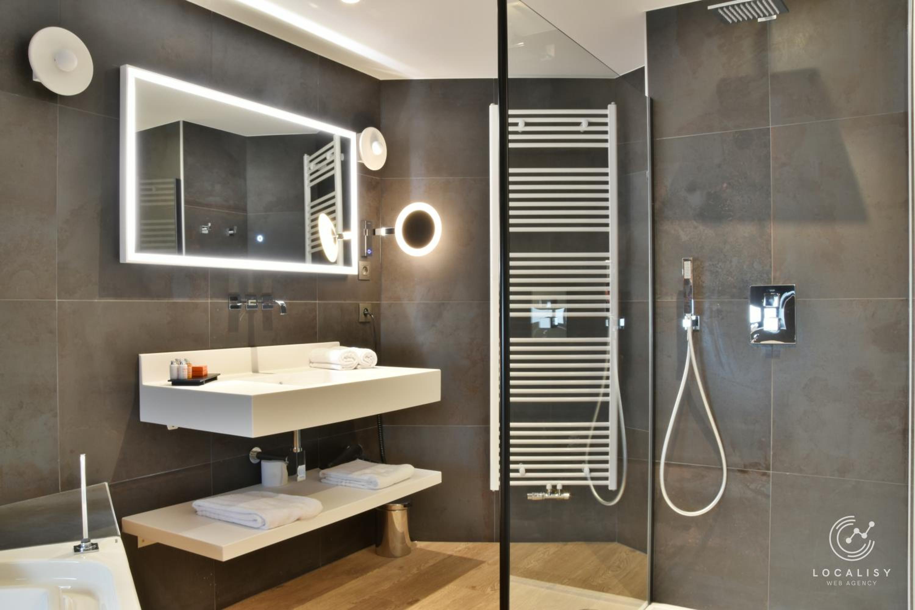 Dans notre suite, la douche et la baignoire top.