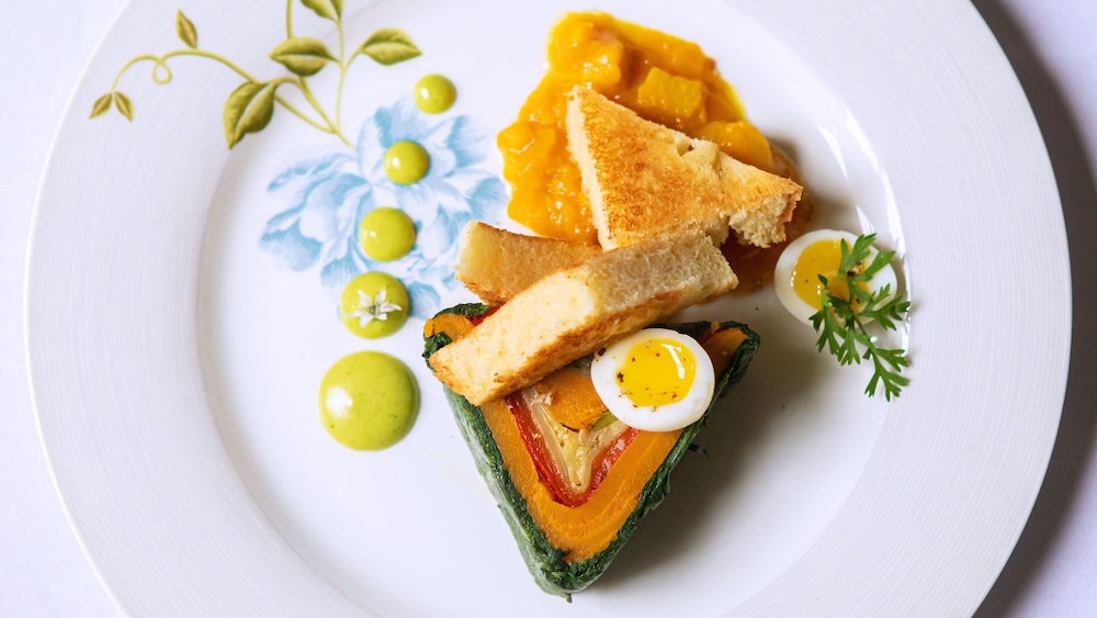 The food was exceptional, with high-quality ingredients and beautifully prepared dishes. Our room was peaceful and quiet, the bed incredibly comfortable, and breakfast each morning was a real treat—absolutely delicious.